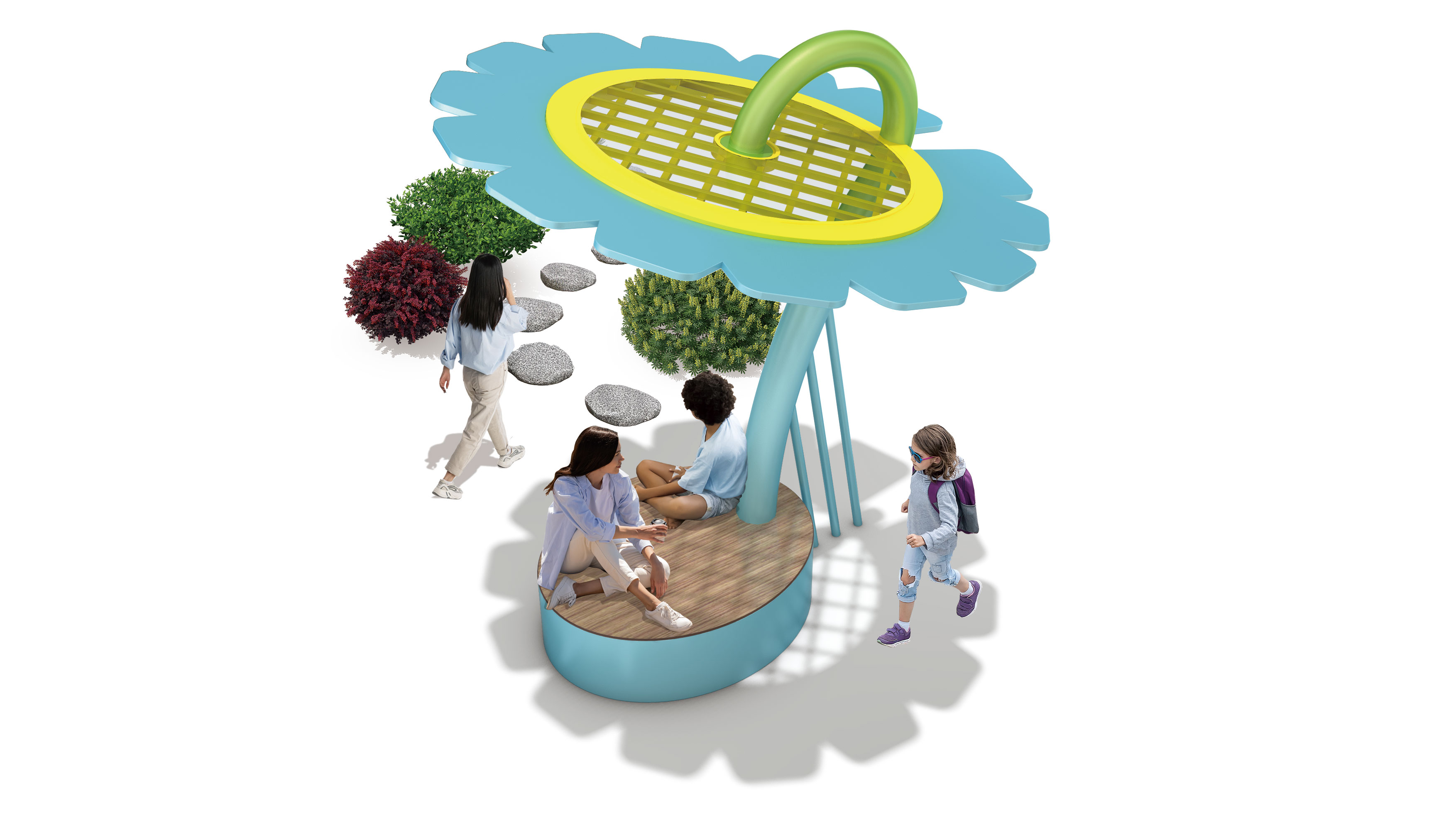 스카이 플라워 쉼터(Sky Flower Shelter)|GC-P-614A 제품목록으로 바로가기 자료 및 바로가기 나라장터 바로연결 도면 다운로드 시공사진 보러가기 기타 하늘빛 꽃잎 캐노피와 개방형 그릴 구조를 통해 빛과 바람이 자연스럽게 흐르도록 설계해, 머무는 순간마다 가볍고 자유로운 휴식을 느낄 수 있는 감성 쉼터를 표현했습니다. 제품명 스카이 플라워 쉼터(Sky Flower Shelter)|GC-P-614A 물품식별번호 25651723 규격 2,800 × 2,800 × 3,000(H) 재질 stl, galvanized, hpl 스카이 플라워 쉼터(Sky Flower Shelter)|GC-P-614A 물품식별번호 25651723 규격 2,800 × 2,800 × 3,000(H) 재질 stl, galvanized, hpl 기타 하늘빛 꽃잎 캐노피와 개방형 그릴 구조를 통해 빛과 바람이 자연스럽게 흐르도록 설계해, 머무는 순간마다 가볍고 자유로운 휴식을 느낄 수 있는 감성 쉼터를 표현했습니다. 자료 및 바로가기 나라장터 바로연결 도면 다운로드 시공사진 보러가기