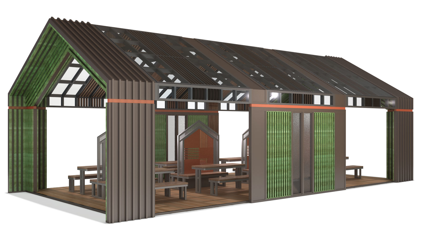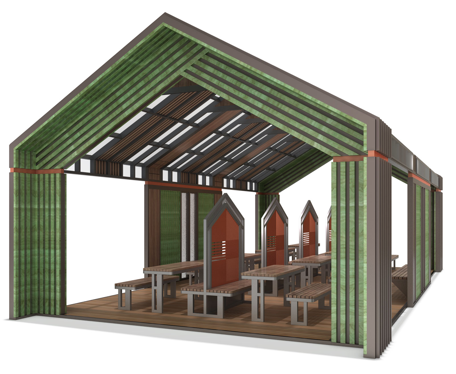 숲결 파빌리온(Forest Pavilion)|GC-P-774-1 제품목록으로 바로가기 자료 및 바로가기 나라장터 바로연결 도면 다운로드 시공사진 보러가기 기타 숲의 결을 닮은 수직·경사 프레임과 반투명 지붕을 통해 자연의 흐름을 공간 안으로 끌어들여, 머무름과 이동, 휴식과 소통이 자연스럽게 이어지는 숲속 열린 쉼 공간으로 디자인했습니다. 제품명 숲결 파빌리온(Forest Pavilion)|GC-P-774-1 물품식별번호 25010271 규격 12,000 × 6,000 × 4,630(H) 재질 stl, galvanized, polycarbonate, hard wood, hpl 숲결 파빌리온(Forest Pavilion)|GC-P-774-1 물품식별번호 25010271 규격 12,000 × 6,000 × 4,630(H) 재질 stl, galvanized, polycarbonate, hard wood, hpl 기타 숲의 결을 닮은 수직·경사 프레임과 반투명 지붕을 통해 자연의 흐름을 공간 안으로 끌어들여, 머무름과 이동, 휴식과 소통이 자연스럽게 이어지는 숲속 열린 쉼 공간으로 디자인했습니다. 자료 및 바로가기 나라장터 바로연결 도면 다운로드 시공사진 보러가기