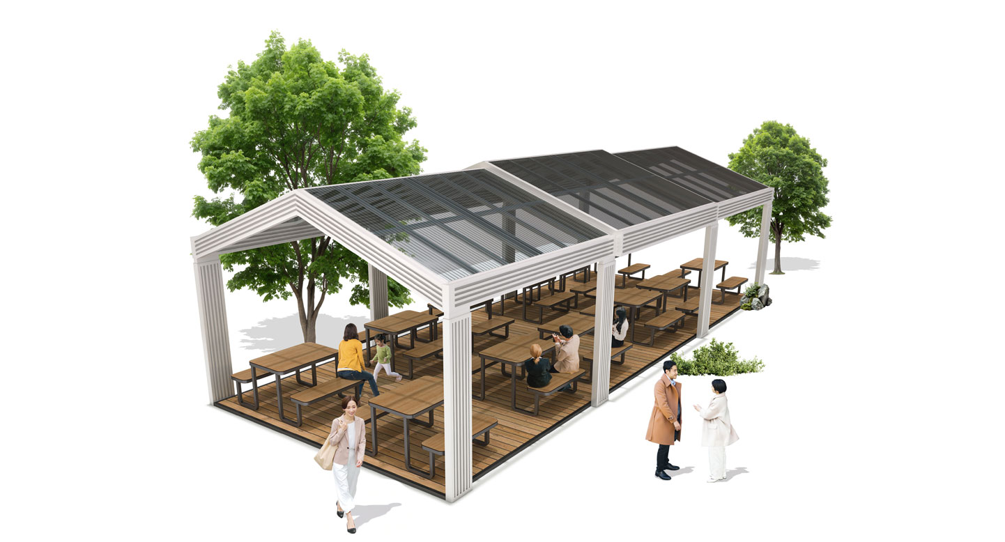 숲빛 스터디 파고라(Forest-colored study pergola)|GC-P-731B-1 제품목록으로 바로가기 자료 및 바로가기 나라장터 바로연결 도면 다운로드 시공사진 보러가기 기타 투명한 경사지붕으로 숲의 빛과 풍경을 그대로 담아내고, 넉넉한 테이블 배치로 학습·휴식·놀이가 자연스럽게 공존하는 열린 야외 학습 공간을 구현했습니다. 제품명 숲빛 스터디 파고라(Forest-colored study pergola)|GC-P-731B-1 물품식별번호 25651567 규격 7,900 × 5,000 × 3,570(H) 재질 stl, galvanized, polycarbonate, hpl 숲빛 스터디 파고라(Forest-colored study pergola)|GC-P-731B-1 물품식별번호 25651567 규격 7,900 × 5,000 × 3,570(H) 재질 stl, galvanized, polycarbonate, hpl 기타 투명한 경사지붕으로 숲의 빛과 풍경을 그대로 담아내고, 넉넉한 테이블 배치로 학습·휴식·놀이가 자연스럽게 공존하는 열린 야외 학습 공간을 구현했습니다. 자료 및 바로가기 나라장터 바로연결 도면 다운로드 시공사진 보러가기