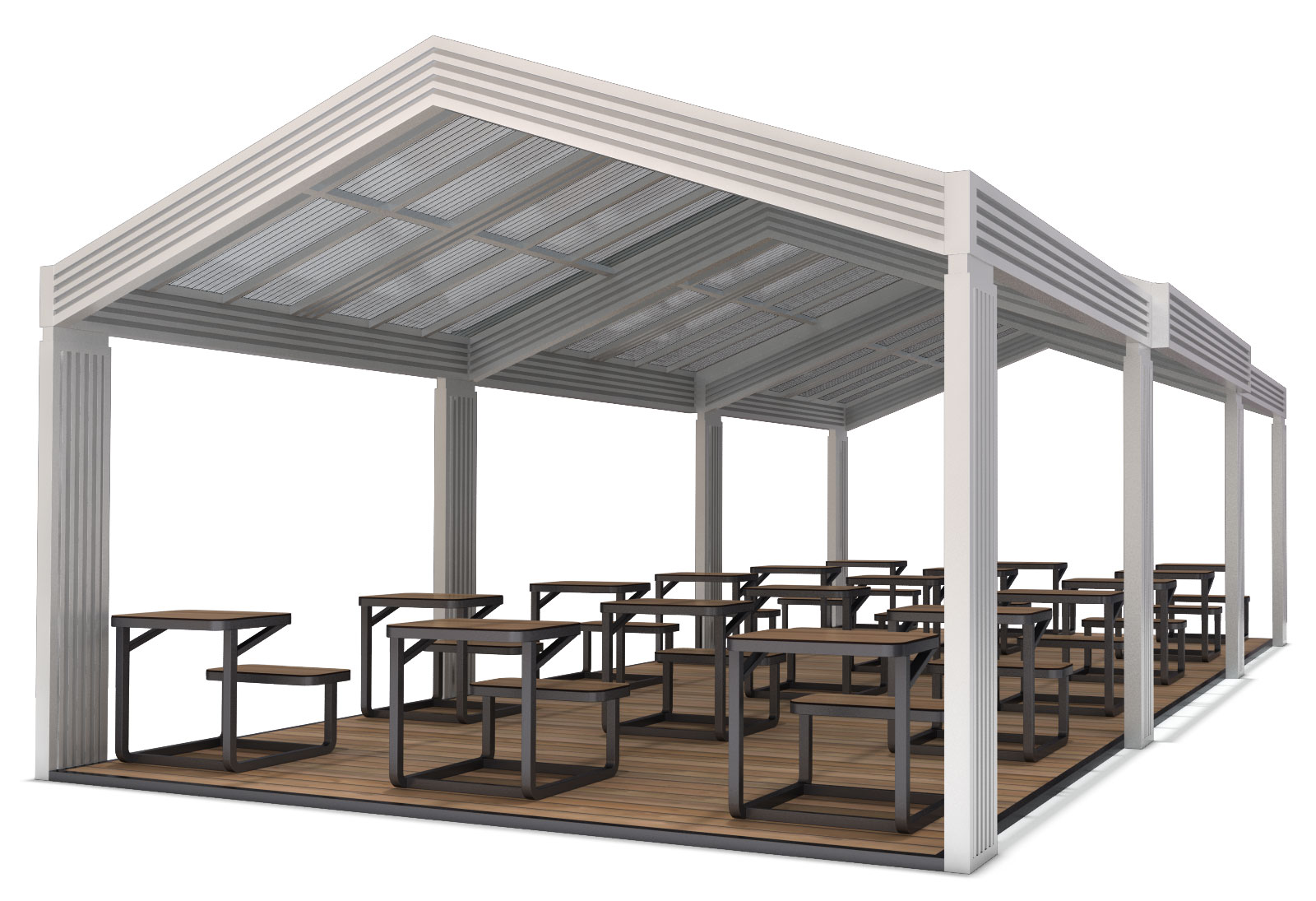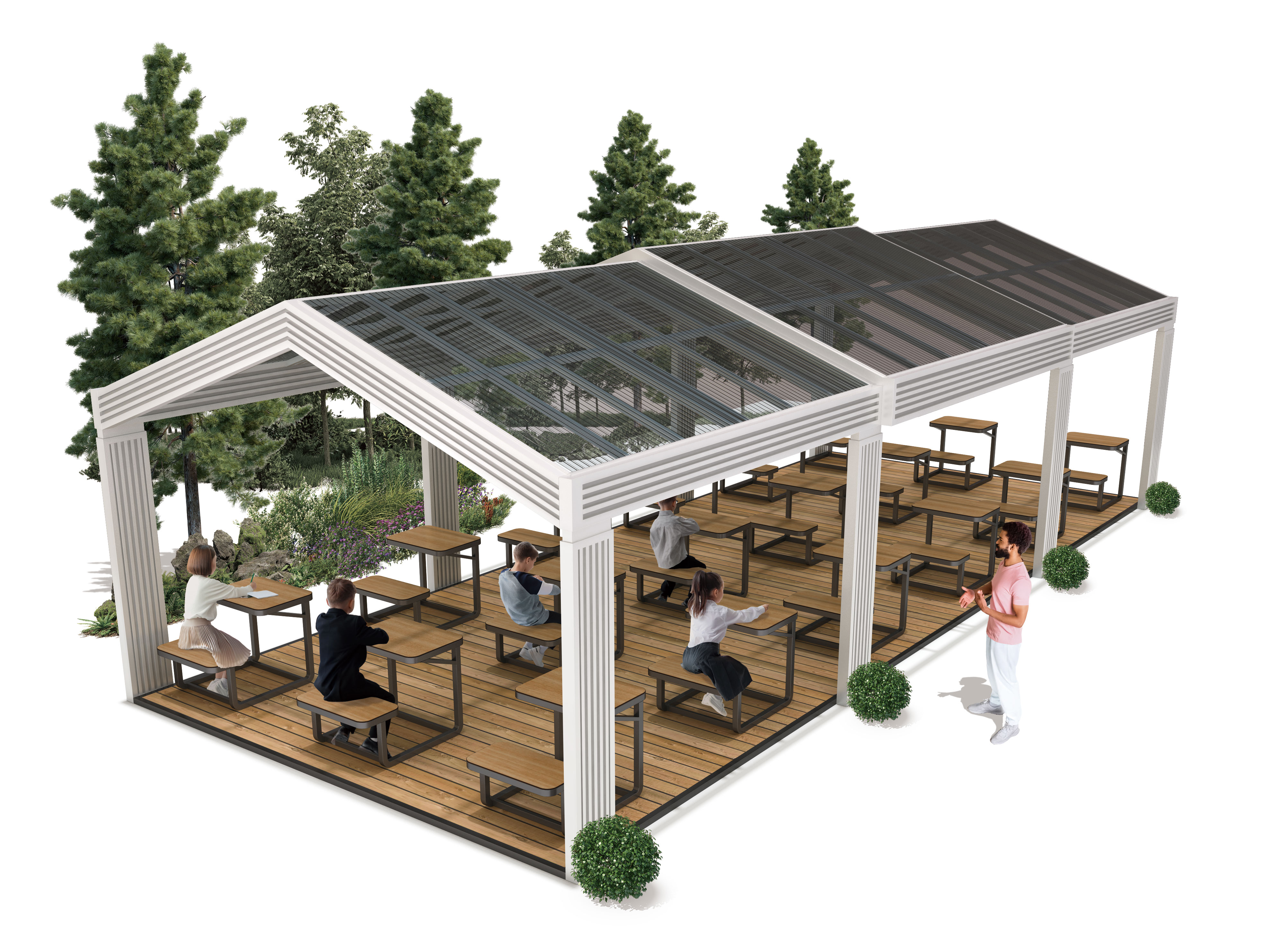 오픈 스터디 파고라(Open Study Pergola)|GC-P-732C-1 제품목록으로 바로가기 자료 및 바로가기 나라장터 바로연결 도면 다운로드 시공사진 보러가기 기타 투명 경사지붕과 개방형 구조를 통해 자연광과 시야를 확보하고, 책상형 배치를 적용해 야외에서도 학습·수업·소그룹 활동이 가능한 공공 학습 중심 파고라로 계획했습니다. 제품명 오픈 스터디 파고라(Open Study Pergola)|GC-P-732C-1 물품식별번호 25651571 규격 12,000 × 5,200 × 3,675(H) 재질 stl, galvanized, polycarbonate, hpl 오픈 스터디 파고라(Open Study Pergola)|GC-P-732C-1 물품식별번호 25651571 규격 12,000 × 5,200 × 3,675(H) 재질 stl, galvanized, polycarbonate, hpl 기타 투명 경사지붕과 개방형 구조를 통해 자연광과 시야를 확보하고, 책상형 배치를 적용해 야외에서도 학습·수업·소그룹 활동이 가능한 공공 학습 중심 파고라로 계획했습니다. 자료 및 바로가기 나라장터 바로연결 도면 다운로드 시공사진 보러가기