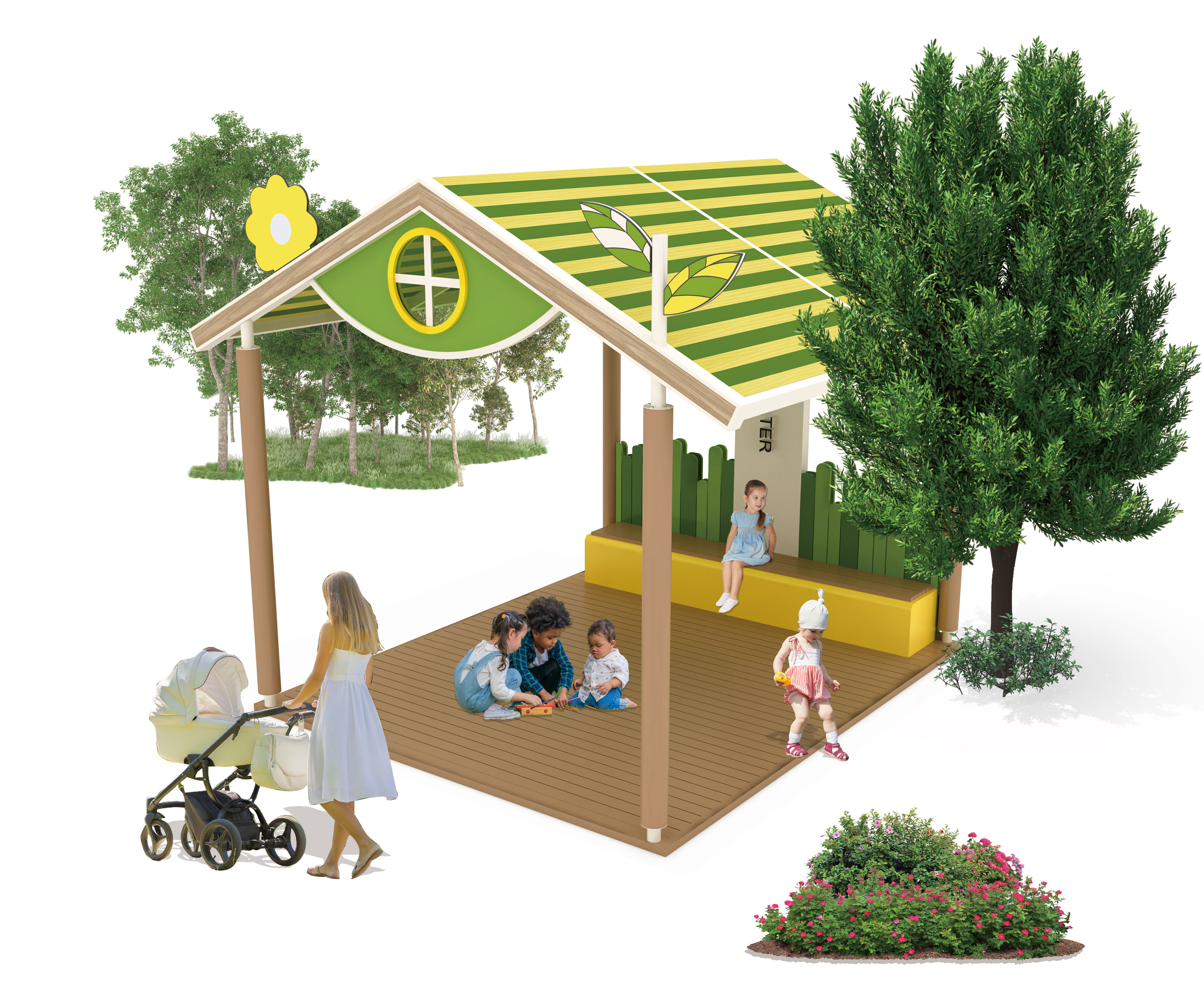 새싹마루 놀쉼집(Saesakmaru Nolshimjip)|GC-P-2103 제품목록으로 바로가기 자료 및 바로가기 나라장터 바로연결 도면 다운로드 시공사진 보러가기 기타 잎사귀 패턴과 스트라이프 지붕으로 자연의 생동감을 담고, 낮은 마루와 개방된 구조를 통해 영유아부터 보호자까지 함께 머물며 놀고 쉬는 따뜻한 숲속 놀이 쉼 공간으로 디자인했습니다. 제품명 새싹마루 놀쉼집(Saesakmaru Nolshimjip)|GC-P-2103 물품식별번호 25565426 규격 4,100 × 3,900 × 3,500(H) 재질 stl, galvanized, polycarbonate, hpl 새싹마루 놀쉼집(Saesakmaru Nolshimjip)|GC-P-2103 물품식별번호 25565426 규격 4,100 × 3,900 × 3,500(H) 재질 stl, galvanized, polycarbonate, hpl 기타 잎사귀 패턴과 스트라이프 지붕으로 자연의 생동감을 담고, 낮은 마루와 개방된 구조를 통해 영유아부터 보호자까지 함께 머물며 놀고 쉬는 따뜻한 숲속 놀이 쉼 공간으로 디자인했습니다. 자료 및 바로가기 나라장터 바로연결 도면 다운로드 시공사진 보러가기