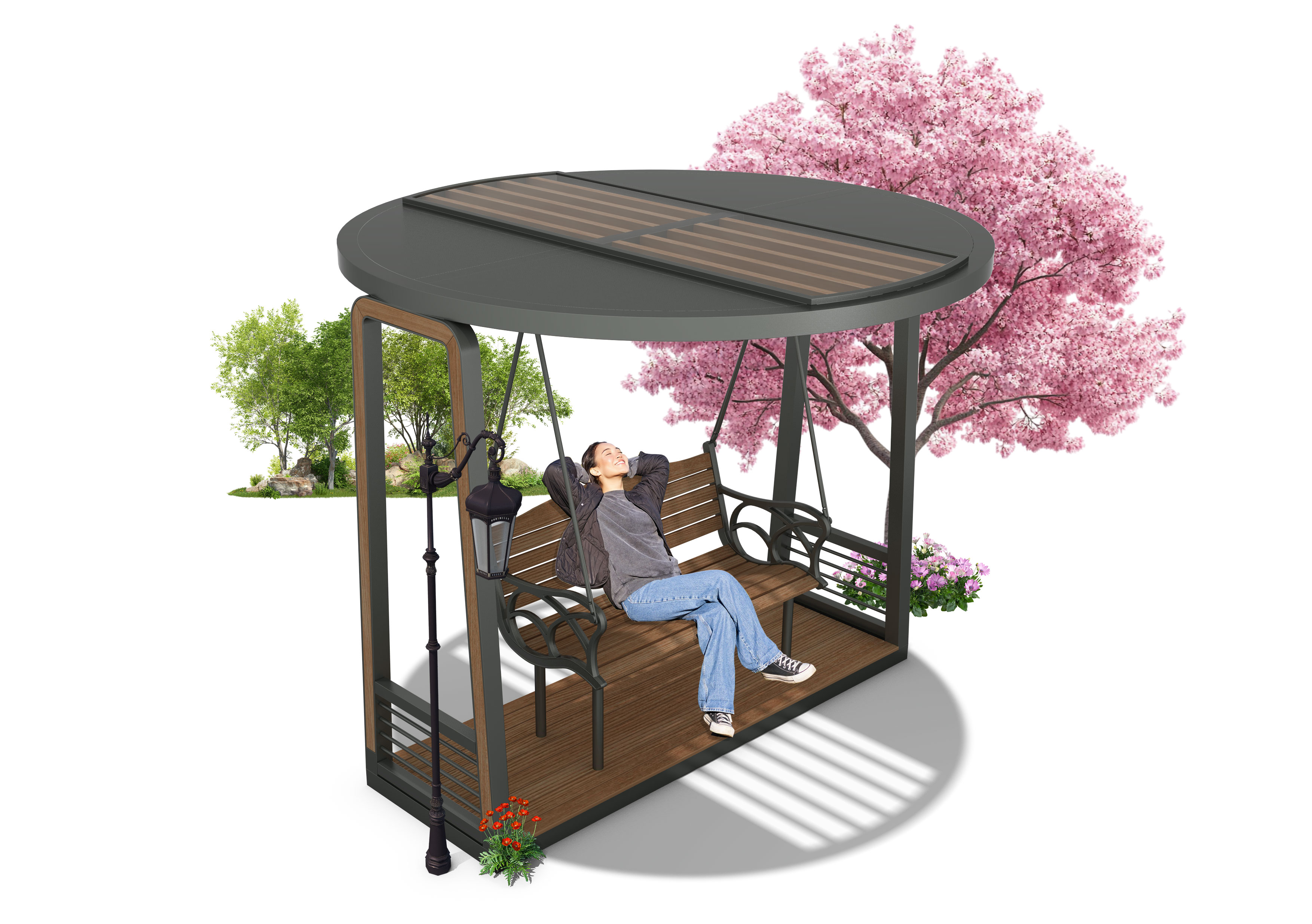 라운드 쉼 캐노피(Round Rest Canopy)|GC-P-232 제품목록으로 바로가기 자료 및 바로가기 나라장터 바로연결 도면 다운로드 시공사진 보러가기 기타 부드러운 원형 지붕 아래 벤치를 배치하고 메탈 프레임과 우드를 조화시켜, 공원·산책로·주거단지에서 혼자만의 여유와 조용한 휴식을 자연스럽게 담아내는 소형 쉼터입니다. 제품명 라운드 쉼 캐노피(Round Rest Canopy)|GC-P-232 물품식별번호 25574608 규격 2,400 × 2,400 × 2,075(H) 재질 stl, galvanized, polycarbonate, hard wood 라운드 쉼 캐노피(Round Rest Canopy)|GC-P-232 물품식별번호 25574608 규격 2,400 × 2,400 × 2,075(H) 재질 stl, galvanized, polycarbonate, hard wood 기타 부드러운 원형 지붕 아래 벤치를 배치하고 메탈 프레임과 우드를 조화시켜, 공원·산책로·주거단지에서 혼자만의 여유와 조용한 휴식을 자연스럽게 담아내는 소형 쉼터입니다. 자료 및 바로가기 나라장터 바로연결 도면 다운로드 시공사진 보러가기