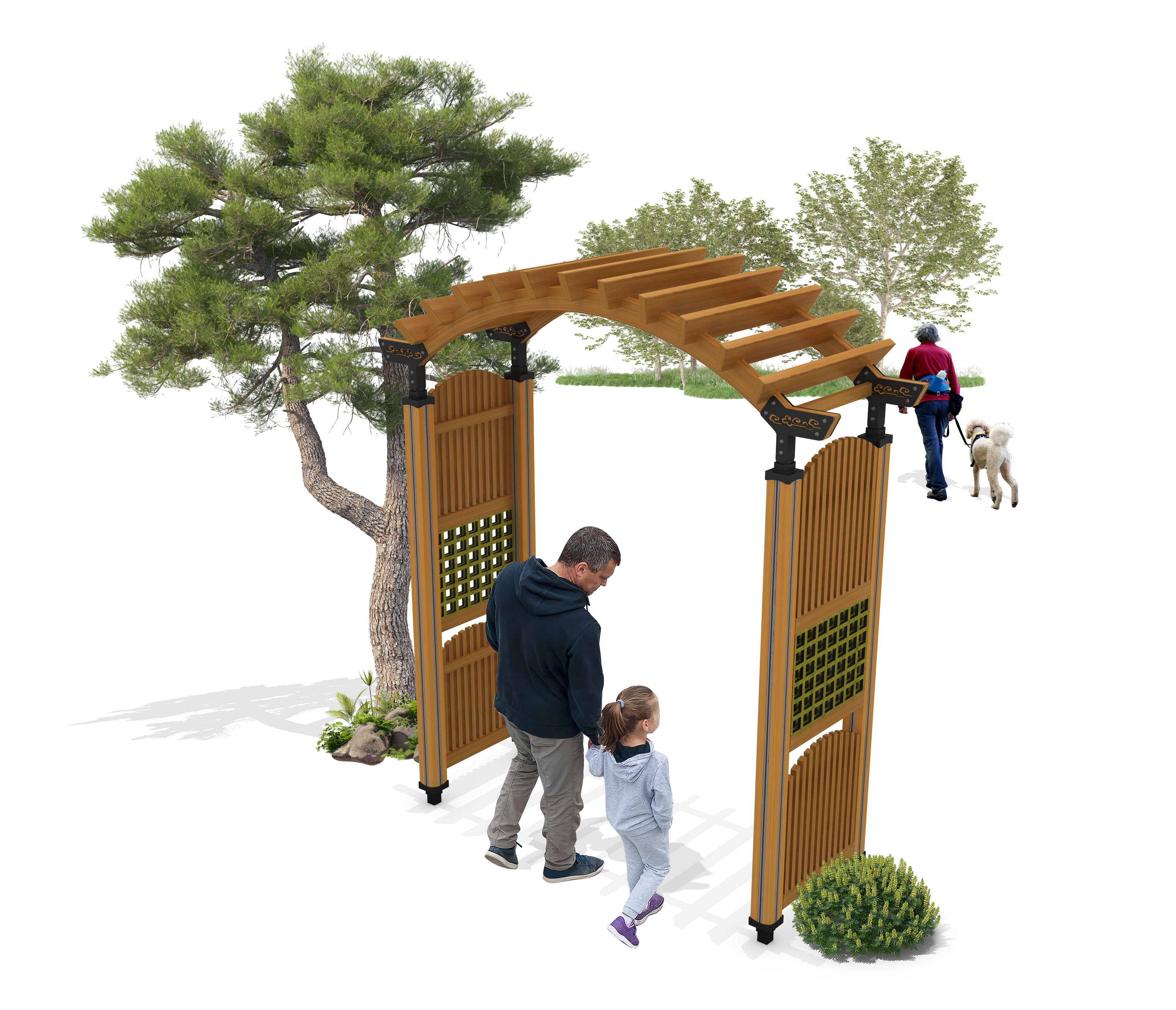 가든 아치 게이트(garden arch gate)|GGG-100A 제품목록으로 바로가기 자료 및 바로가기 나라장터 바로연결 도면 다운로드 시공사진 보러가기 기타 부드러운 곡선의 우드 아치와 개방형 프레임이 산책로의 흐름을 자연스럽게 연결하며, 통과 자체가 하나의 풍경이 되는 상징적 가든 게이트입니다. 제품명 가든 아치 게이트(garden arch gate)|GGG-100A 물품식별번호 25651575 규격 2,450 × 1,000 × 2,700(H) 재질 stl, hard wood, birch plywood 가든 아치 게이트(garden arch gate)|GGG-100A 물품식별번호 25651575 규격 2,450 × 1,000 × 2,700(H) 재질 stl, hard wood, birch plywood 기타 부드러운 곡선의 우드 아치와 개방형 프레임이 산책로의 흐름을 자연스럽게 연결하며, 통과 자체가 하나의 풍경이 되는 상징적 가든 게이트입니다. 자료 및 바로가기 나라장터 바로연결 도면 다운로드 시공사진 보러가기