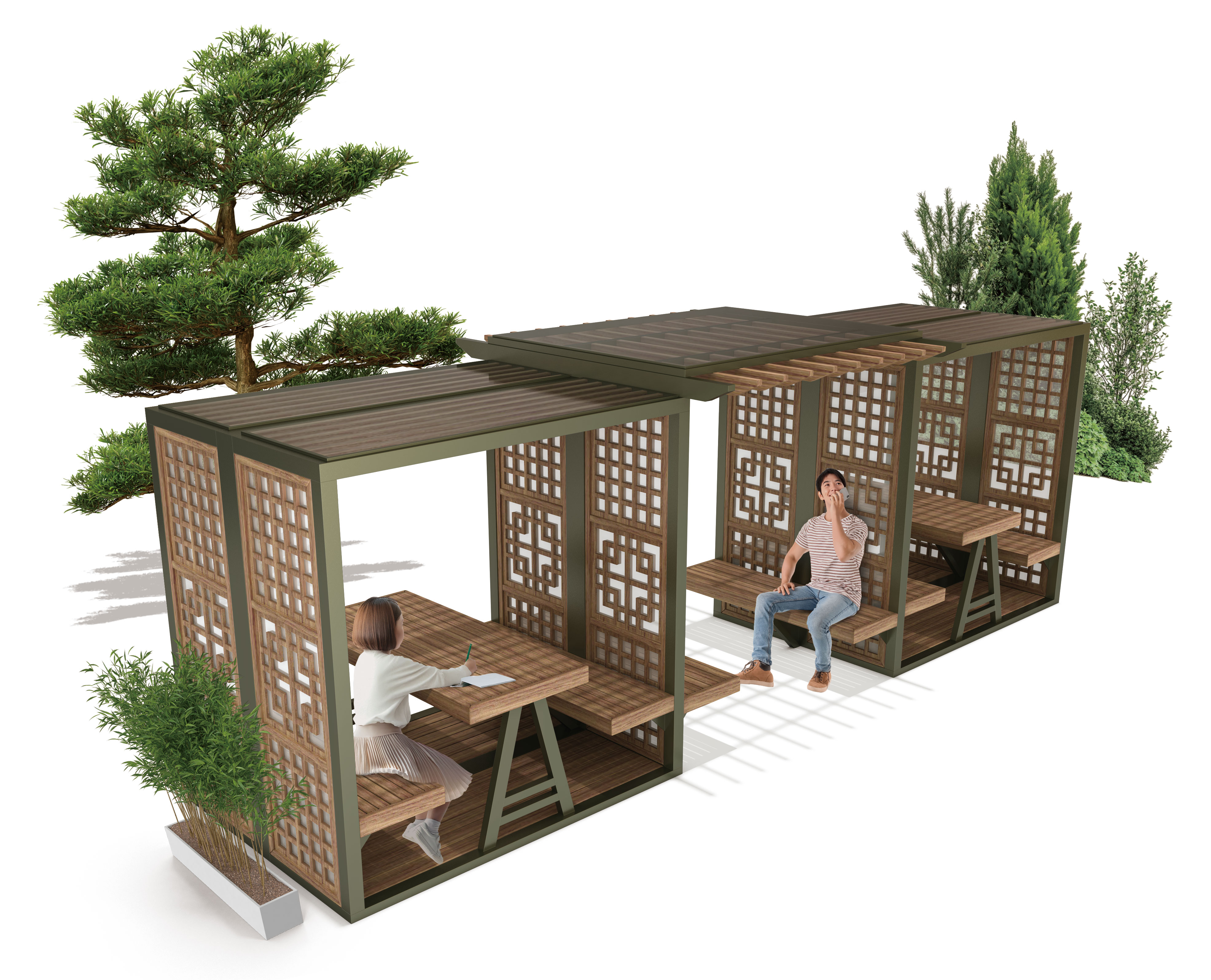 한결쉼 모듈 파빌리온(Hankyeolshim Modular Pavilion)|GCP-411M-1 제품목록으로 바로가기 자료 및 바로가기 나라장터 바로연결 도면 다운로드 시공사진 보러가기 기타 한옥의 격자와 처마 비례를 현대적으로 재해석한 모듈형 구조로, 개인의 집중과 소규모 대화가 조용히 공존하는 차분한 휴식 공간을 표현했습니다. 제품명 한결쉼 모듈 파빌리온(Hankyeolshim Modular Pavilion)|GCP-411M-1 물품식별번호 25483047 규격 6,300 × 2,200 × 2,270(H) 재질 stl, polycarbonate, hard wood 한결쉼 모듈 파빌리온(Hankyeolshim Modular Pavilion)|GCP-411M-1 물품식별번호 25483047 규격 6,300 × 2,200 × 2,270(H) 재질 stl, polycarbonate, hard wood 기타 한옥의 격자와 처마 비례를 현대적으로 재해석한 모듈형 구조로, 개인의 집중과 소규모 대화가 조용히 공존하는 차분한 휴식 공간을 표현했습니다. 자료 및 바로가기 나라장터 바로연결 도면 다운로드 시공사진 보러가기