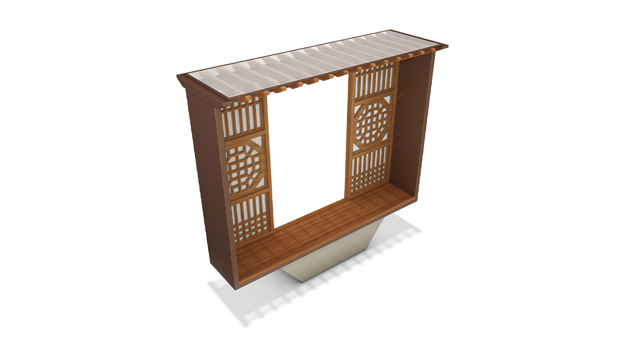 한옥 포토 창호| GC-P-803A 제품목록으로 바로가기 자료 및 바로가기 나라장터 바로연결 도면 다운로드 시공사진 보러가기 기타 한옥의 창호지문과 처마를 현대적으로 담아낸 조형물입니다. 격자무늬와 개방적인 구조가 조화를 이루며, 관광지, 공원, 산책길 등에서 한국적인 분위기를 연출합니다. 제품명 한옥 포토 창호| GC-P-803A 물품식별번호 25651702 규격 2,500 × 800 × 2,850(H) 재질 stl, galvanized, hpl, PC hard wood, birch plywood 한옥 포토 창호| GC-P-803A 물품식별번호 25651702 규격 2,500 × 800 × 2,850(H) 재질 stl, galvanized, hpl, PC hard wood, birch plywood 기타 한옥의 창호지문과 처마를 현대적으로 담아낸 조형물입니다. 격자무늬와 개방적인 구조가 조화를 이루며, 관광지, 공원, 산책길 등에서 한국적인 분위기를 연출합니다. 자료 및 바로가기 나라장터 바로연결 도면 다운로드 시공사진 보러가기