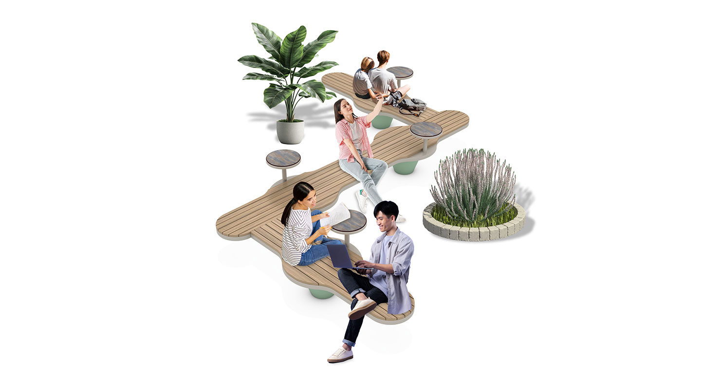 지그릴렉스 벤치(ZigRelax Bench)|GS-DB037 제품목록으로 바로가기 자료 및 바로가기 나라장터 바로연결 도면 다운로드 시공사진 보러가기 기타 지그재그 형태의 벤치로, 중간에 라운드 포인트를 더해 독특한 디자인을 완성했습니다. 4개의 티테이블과 함께 편안한 휴식 공간을 제공하며, 중앙의 빈 공간은 자연과 조화를 이루는 조경을 배치할 수 있습니다. 제품명 지그릴렉스 벤치(ZigRelax Bench)|GS-DB037 물품식별번호 25792815 규격 4,085 × 4,460 × 720(H) 재질 stl pipe, galvanized, hpl, hard wood 지그릴렉스 벤치(ZigRelax Bench)|GS-DB037 물품식별번호 25792815 규격 4,085 × 4,460 × 720(H) 재질 stl pipe, galvanized, hpl, hard wood 기타 지그재그 형태의 벤치로, 중간에 라운드 포인트를 더해 독특한 디자인을 완성했습니다. 4개의 티테이블과 함께 편안한 휴식 공간을 제공하며, 중앙의 빈 공간은 자연과 조화를 이루는 조경을 배치할 수 있습니다. 자료 및 바로가기 나라장터 바로연결 도면 다운로드 시공사진 보러가기
