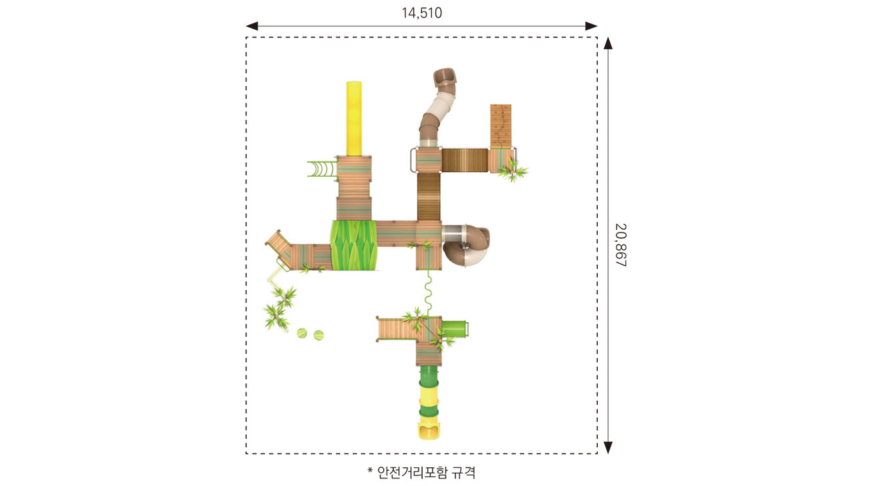 판다 포레스트 어드벤처 (Panda Forest Adventure)|GGPG-011 제품목록으로 바로가기 자료 및 바로가기 나라장터 바로연결 도면 다운로드 시공사진 보러가기 기타 대나무 숲과 판다 캐릭터를 테마로, 아이들이 자연 속을 탐험하듯 이동하며 놀이하도록 디자인 하였습니다. 연결된 데크와 슬라이드, 오르기 요소를 통해 활동의 흐름이 끊기지 않도록 구성해 신체 활동과 상상 놀이가 함께 확장되도록 의도하였습니다. 제품명 판다 포레스트 어드벤처 (Panda Forest Adventure)|GGPG-011 물품식별번호 25438419|안전인증번호:CA023H10019-3022 규격 16,867 x 11,510 x 4,544(H), 15종 재질 stl, hpl, pe, hard wood 판다 포레스트 어드벤처 (Panda Forest Adventure)|GGPG-011 물품식별번호 25438419|안전인증번호:CA023H10019-3022 규격 16,867 x 11,510 x 4,544(H), 15종 재질 stl, hpl, pe, hard wood 기타 대나무 숲과 판다 캐릭터를 테마로, 아이들이 자연 속을 탐험하듯 이동하며 놀이하도록 디자인 하였습니다. 연결된 데크와 슬라이드, 오르기 요소를 통해 활동의 흐름이 끊기지 않도록 구성해 신체 활동과 상상 놀이가 함께 확장되도록 의도하였습니다. 자료 및 바로가기 나라장터 바로연결 도면 다운로드 시공사진 보러가기