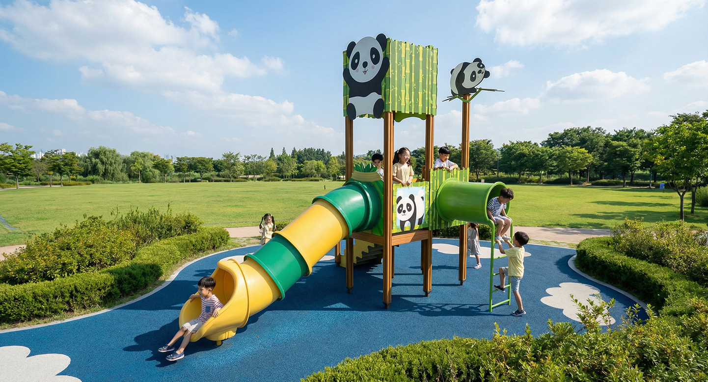 판다 트리 슬라이드 타워 (Panda Tree Slide Tower)|GGPG-011-10 제품목록으로 바로가기 자료 및 바로가기 나라장터 바로연결 도면 다운로드 시공사진 보러가기 기타 판다와 대나무 숲을 상징하는 수직형 타워 구조로, 오르기와 터널 슬라이드가 하나의 흐름으로 이어지도록 디자인 하였습니다. 단순하지만 입체적인 동선을 통해 아이들이 자연스럽게 도전하고 내려오며 신체 활동과 탐험 놀이를 즐길 수 있도록 의도하였습니다. 제품명 판다 트리 슬라이드 타워 (Panda Tree Slide Tower)|GGPG-011-10 물품식별번호 25438429|안전인증번호:CA023H10019-3022 규격 5,848 x 3,896 x 4,390(H), 3종 재질 stl, hpl, pe, hard wood 판다 트리 슬라이드 타워 (Panda Tree Slide Tower)|GGPG-011-10 물품식별번호 25438429|안전인증번호:CA023H10019-3022 규격 5,848 x 3,896 x 4,390(H), 3종 재질 stl, hpl, pe, hard wood 기타 판다와 대나무 숲을 상징하는 수직형 타워 구조로, 오르기와 터널 슬라이드가 하나의 흐름으로 이어지도록 디자인 하였습니다. 단순하지만 입체적인 동선을 통해 아이들이 자연스럽게 도전하고 내려오며 신체 활동과 탐험 놀이를 즐길 수 있도록 의도하였습니다. 자료 및 바로가기 나라장터 바로연결 도면 다운로드 시공사진 보러가기