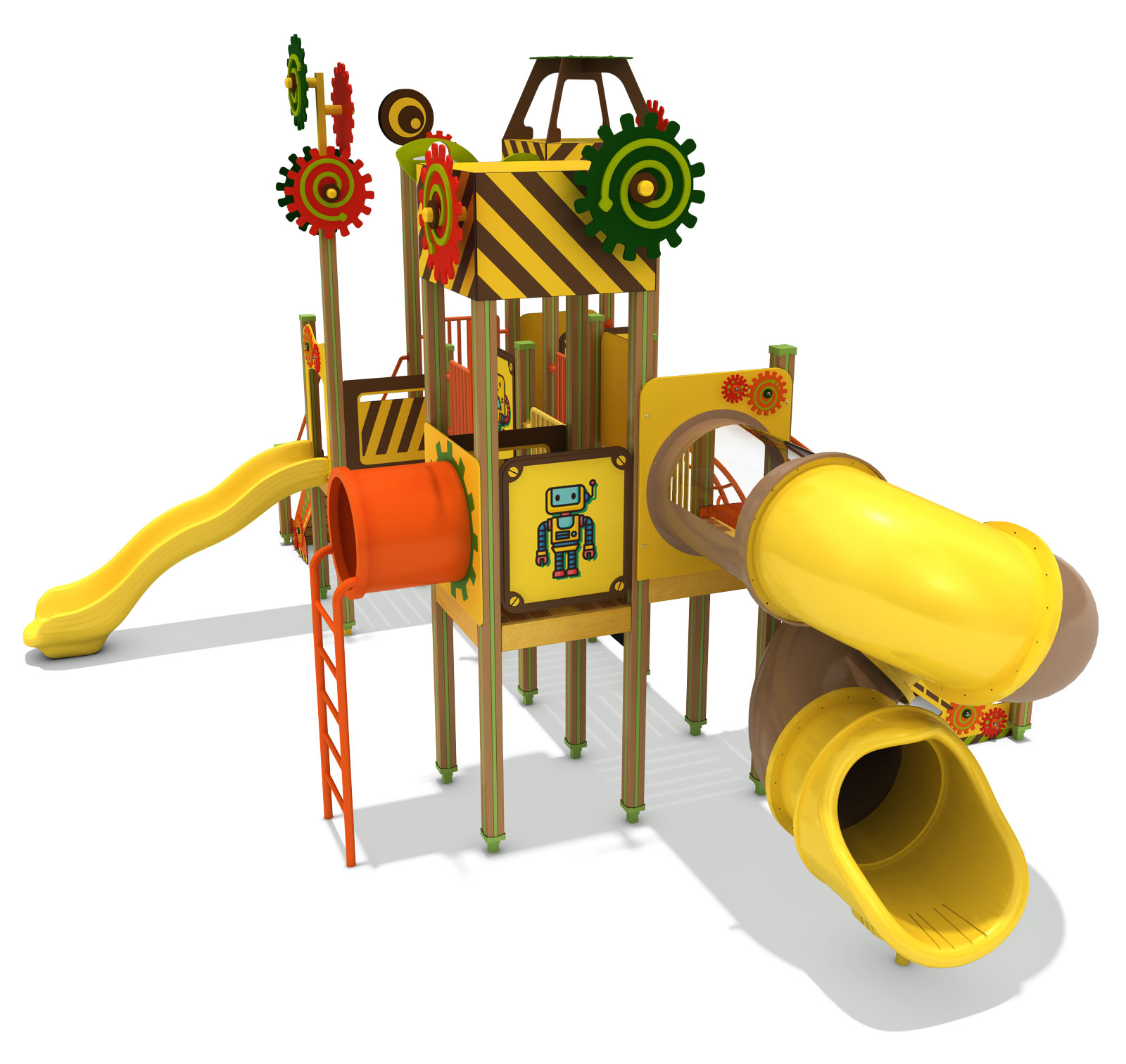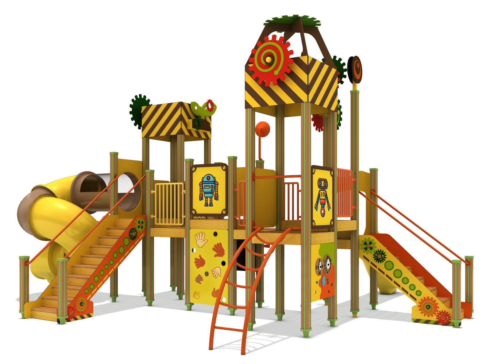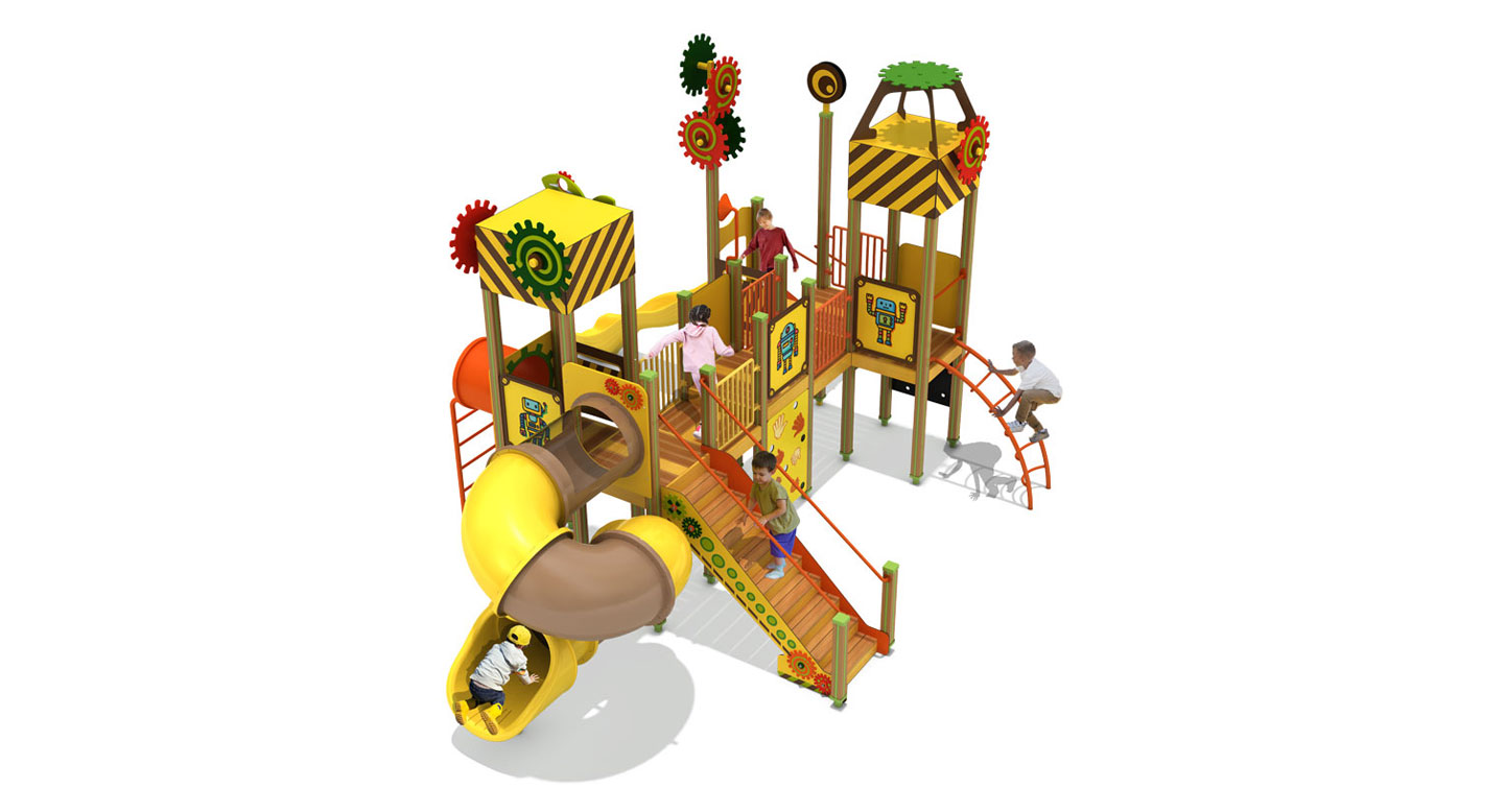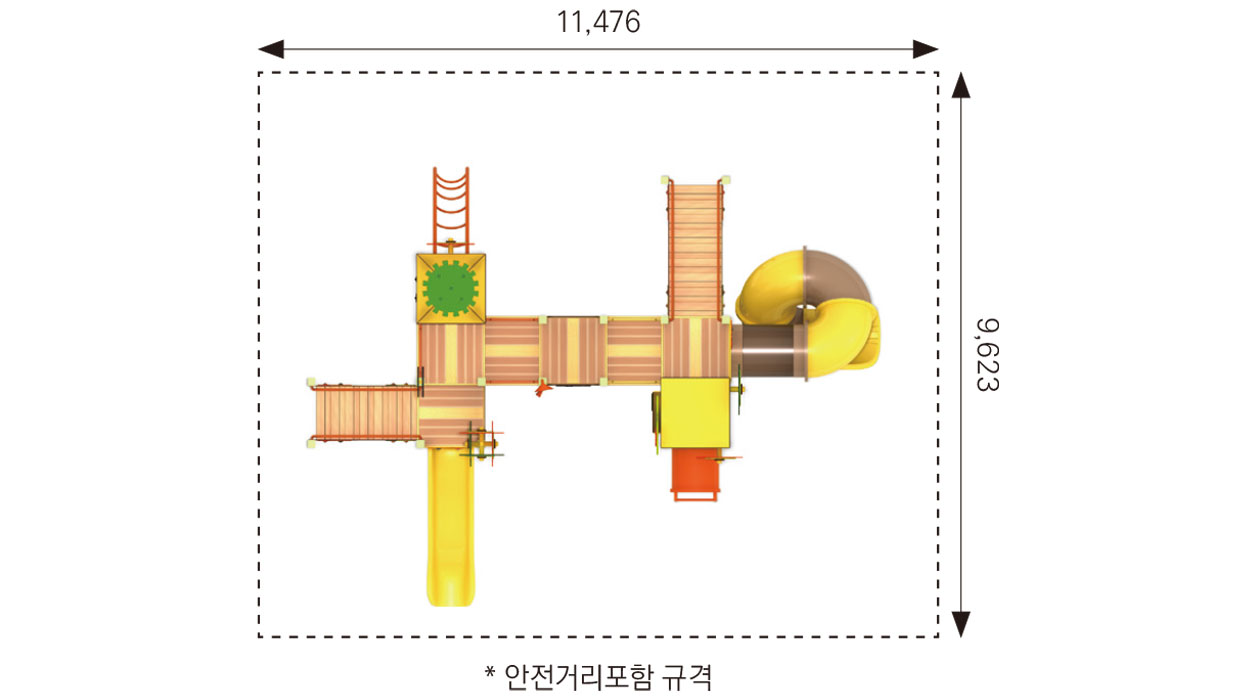 기어와 타워 요소를 숲속 탐험 컨셉으로 풀어내어, 아이들이 다양한 높이와 동선을 오가며 놀이의 흐름을 자연스럽게 경험하도록 디자인 하였습니다. 브릿지와 슬라이드가 유기적으로 연결되어 도전·이동·휴식이 반복되는 놀이 구조를 만들고, 활동성과 상상력을 함께 키울 수 있도록 구성하였습니다.