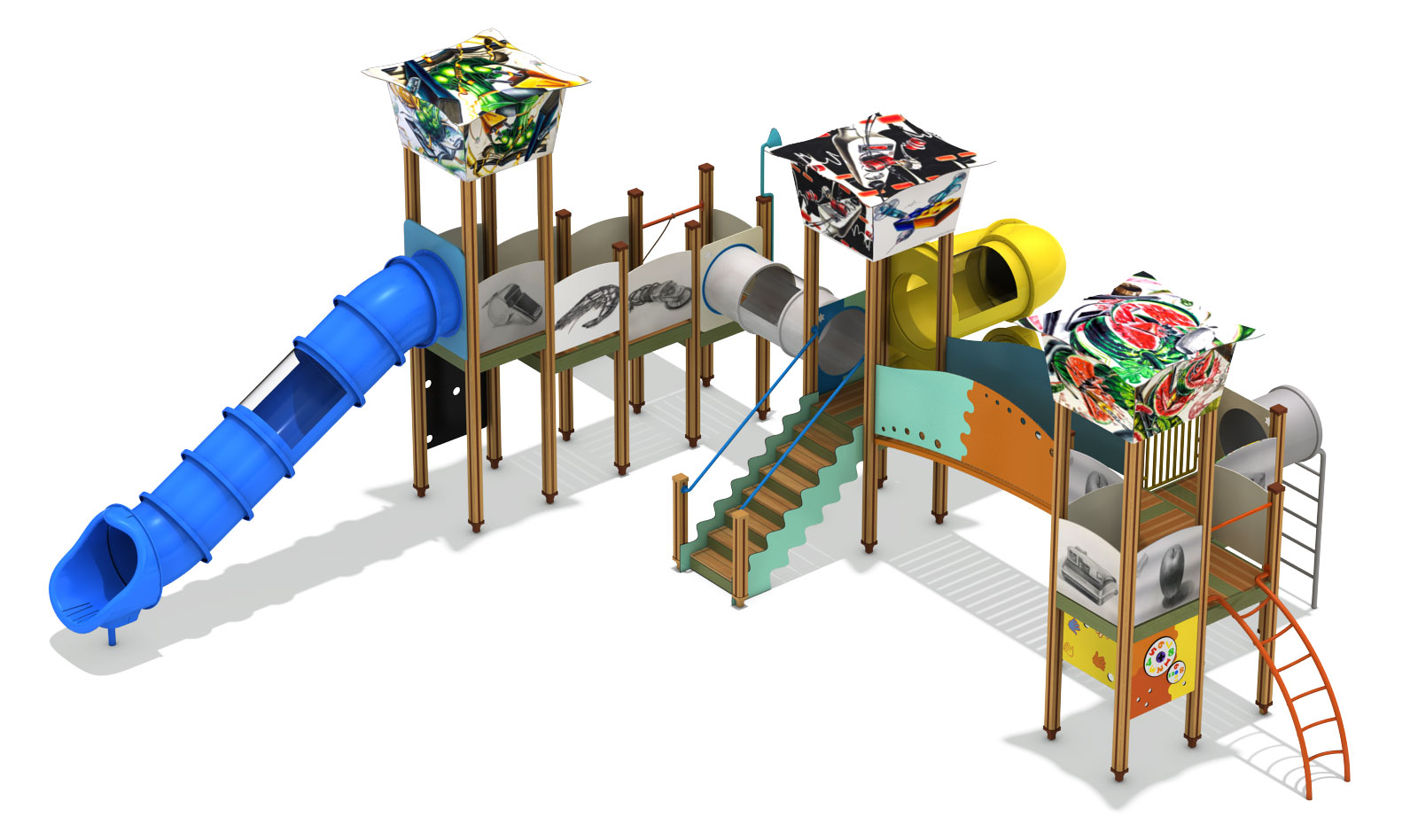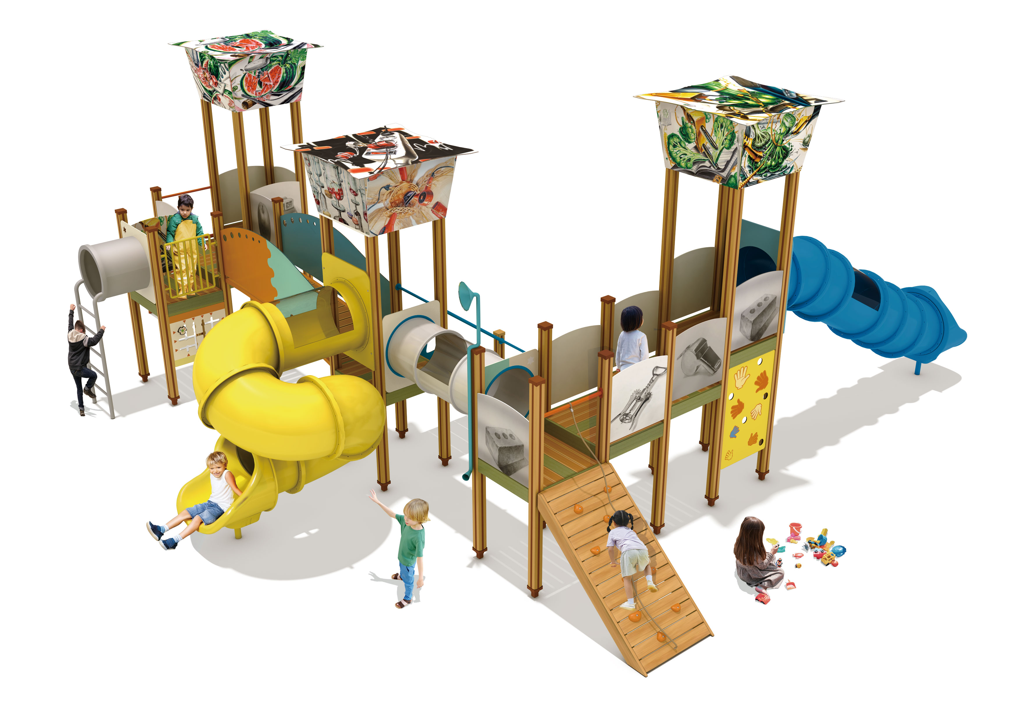 아트 타워 익스플로러 (Art Tower Explorer)|GGPG-005A-2 제품목록으로 바로가기 자료 및 바로가기 나라장터 바로연결 도면 다운로드 시공사진 보러가기 기타 예술 작품이 전시된 타워를 탐험하듯 구성한 다층 구조로, 큐브형 타워·데크·터널·슬라이드를 유기적으로 연결해 아이들이 이동하며 신체 활동과 함께 관찰·상상·표현 놀이를 자연스럽게 경험하는 아트·에듀형 조합놀이시설입니다. 제품명 아트 타워 익스플로러 (Art Tower Explorer)|GGPG-005A-2 물품식별번호 25988117|안전인증번호:CA023H10019-3020 규격 10,430 × 9,692 × 4,318(H), 13종 재질 stl, hpl, pe, hard wood 아트 타워 익스플로러 (Art Tower Explorer)|GGPG-005A-2 물품식별번호 25988117|안전인증번호:CA023H10019-3020 규격 10,430 × 9,692 × 4,318(H), 13종 재질 stl, hpl, pe, hard wood 기타 예술 작품이 전시된 타워를 탐험하듯 구성한 다층 구조로, 큐브형 타워·데크·터널·슬라이드를 유기적으로 연결해 아이들이 이동하며 신체 활동과 함께 관찰·상상·표현 놀이를 자연스럽게 경험하는 아트·에듀형 조합놀이시설입니다. 자료 및 바로가기 나라장터 바로연결 도면 다운로드 시공사진 보러가기