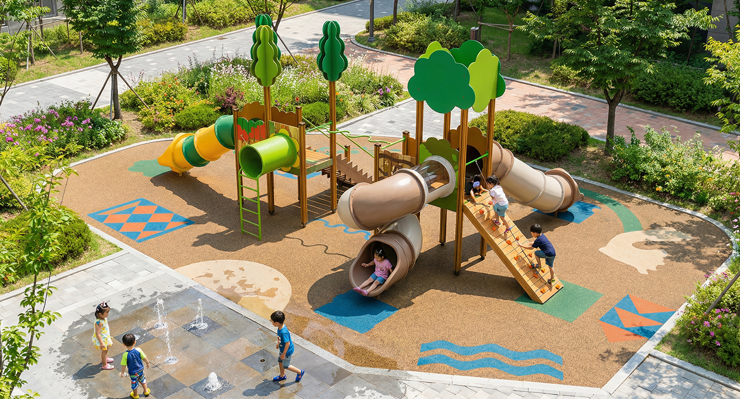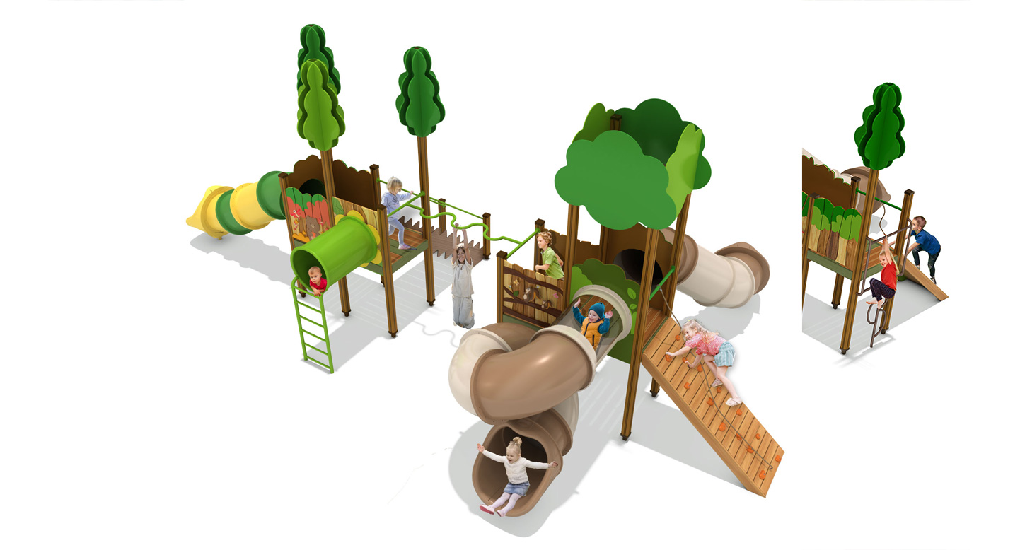 트리 브릿지 포레스트 플레이존 (Tree Bridge Forest Play Zone)|GGPG-003A-5 제품목록으로 바로가기 자료 및 바로가기 나라장터 바로연결 도면 다운로드 시공사진 보러가기 기타 숲속 큰 나무와 나무 사이를 잇는 브릿지를 모티브로, 타워·터널·오르기·슬라이드를 자연스럽게 연결해 아이들이 숲을 건너듯 이동하며 탐험·도전·균형 놀이를 연속적으로 경험하는 숲 테마 조합놀이시설입니다. 제품명 트리 브릿지 포레스트 플레이존 (Tree Bridge Forest Play Zone)|GGPG-003A-5 물품식별번호 25988100|안전인증번호:CA023H10019-3022 규격 11,042 × 7,389 × 4,419(H), 7종 재질 stl, hpl, pe, hard wood 트리 브릿지 포레스트 플레이존 (Tree Bridge Forest Play Zone)|GGPG-003A-5 물품식별번호 25988100|안전인증번호:CA023H10019-3022 규격 11,042 × 7,389 × 4,419(H), 7종 재질 stl, hpl, pe, hard wood 기타 숲속 큰 나무와 나무 사이를 잇는 브릿지를 모티브로, 타워·터널·오르기·슬라이드를 자연스럽게 연결해 아이들이 숲을 건너듯 이동하며 탐험·도전·균형 놀이를 연속적으로 경험하는 숲 테마 조합놀이시설입니다. 자료 및 바로가기 나라장터 바로연결 도면 다운로드 시공사진 보러가기