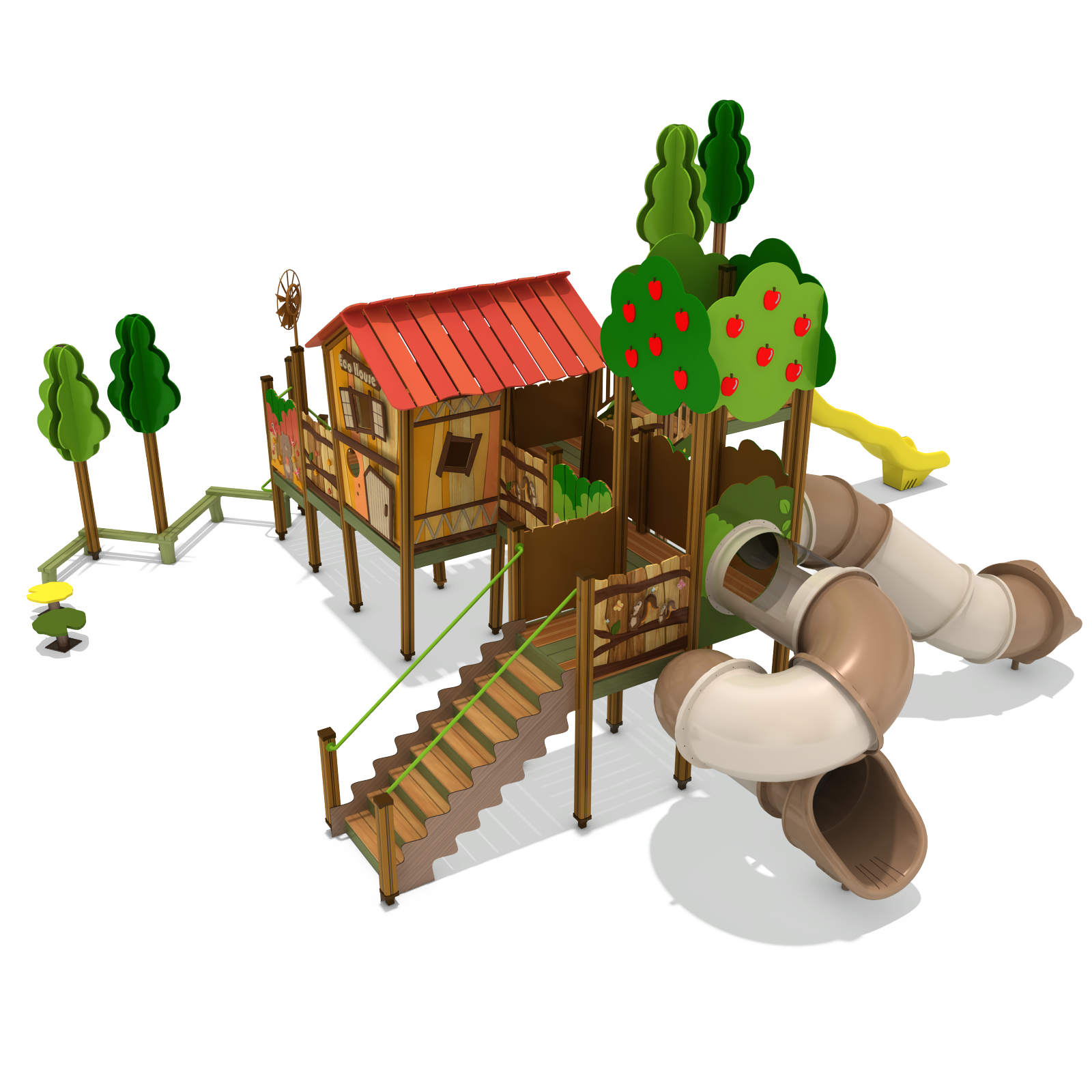 애플 포레스트 플레이빌리지 (Apple Forest Play Village)|GGPG-003A-2 제품목록으로 바로가기 자료 및 바로가기 나라장터 바로연결 도면 다운로드 시공사진 보러가기 기타 사과나무가 있는 숲속 마을을 모티브로 한 오두막형 구조에 데크·터널·슬라이드를 마을 동선처럼 연결해, 아이들이 걷고 오르며 탐험과 역할놀이를 자연스럽게 즐기는 스토리형 숲 테마 조합놀이시설입니다. 제품명 애플 포레스트 플레이빌리지 (Apple Forest Play Village)|GGPG-003A-2 물품식별번호 25988097|안전인증번호:CA023H10019-3022 규격 11,361 × 9,866 × 4,836(H), 8종 재질 stl, hpl, pe, hard wood 애플 포레스트 플레이빌리지 (Apple Forest Play Village)|GGPG-003A-2 물품식별번호 25988097|안전인증번호:CA023H10019-3022 규격 11,361 × 9,866 × 4,836(H), 8종 재질 stl, hpl, pe, hard wood 기타 사과나무가 있는 숲속 마을을 모티브로 한 오두막형 구조에 데크·터널·슬라이드를 마을 동선처럼 연결해, 아이들이 걷고 오르며 탐험과 역할놀이를 자연스럽게 즐기는 스토리형 숲 테마 조합놀이시설입니다. 자료 및 바로가기 나라장터 바로연결 도면 다운로드 시공사진 보러가기