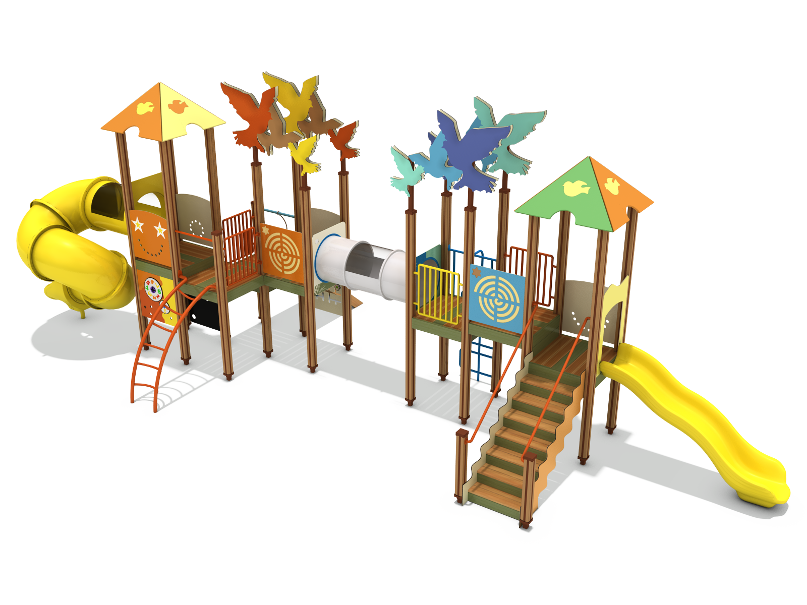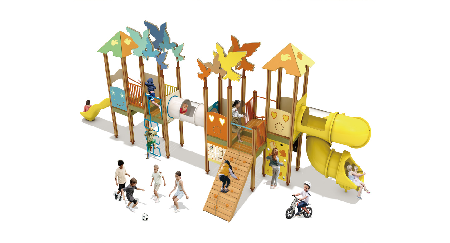 버드 트레일 플레이빌리지 (Bird Trail Play Village)|GGPG-001A-7 제품목록으로 바로가기 자료 및 바로가기 나라장터 바로연결 도면 다운로드 시공사진 보러가기 기타 숲속 나무 사이를 잇는 새들의 길(Bird Trail)을 모티브로, 타워와 브릿지·터널·슬라이드를 연속 배치해 아이들이 걷고 오르며 이동 중심의 탐험 놀이를 경험하도록 구성한 숲 테마 조합놀이시설입니다. 제품명 버드 트레일 플레이빌리지 (Bird Trail Play Village)|GGPG-001A-7 물품식별번호 25988089|안전인증번호:CA023H10019-3020 규격 11,628 × 4,067 × 4,112(H), 10종 재질 stl, hpl, pe, hard wood 버드 트레일 플레이빌리지 (Bird Trail Play Village)|GGPG-001A-7 물품식별번호 25988089|안전인증번호:CA023H10019-3020 규격 11,628 × 4,067 × 4,112(H), 10종 재질 stl, hpl, pe, hard wood 기타 숲속 나무 사이를 잇는 새들의 길(Bird Trail)을 모티브로, 타워와 브릿지·터널·슬라이드를 연속 배치해 아이들이 걷고 오르며 이동 중심의 탐험 놀이를 경험하도록 구성한 숲 테마 조합놀이시설입니다. 자료 및 바로가기 나라장터 바로연결 도면 다운로드 시공사진 보러가기