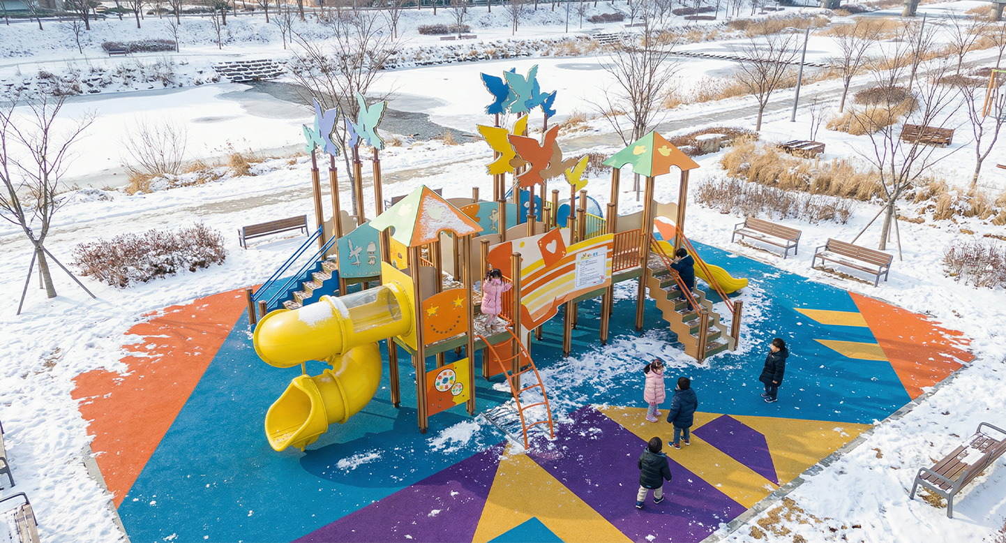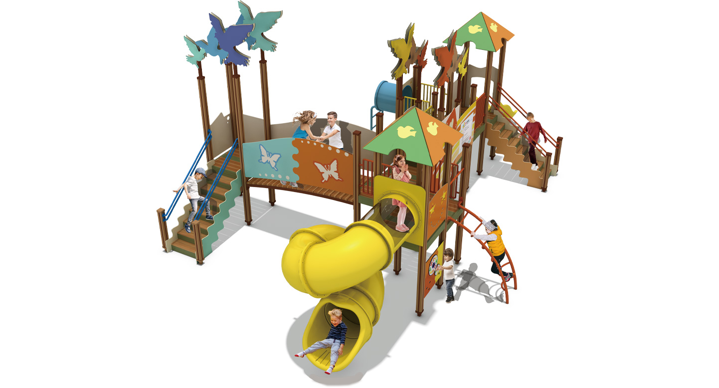 스카이 버드 익스플로러 (Sky Bird Explorer)|GGPG-001A-4A 제품목록으로 바로가기 자료 및 바로가기 나라장터 바로연결 도면 다운로드 시공사진 보러가기 기타 하늘을 나는 새들의 군무를 형상화한 수직 타워와 브릿지 구조를 중심으로, 오르기·건너기·미끄러지기 동작이 연속되는 입체 동선을 구성해 아이들이 마치 하늘 숲을 탐험하듯 자유롭고 역동적인 놀이 경험을 즐기도록 한 조합놀이시설입니다. 제품명 스카이 버드 익스플로러 (Sky Bird Explorer)|GGPG-001A-4A 물품식별번호 25988087|안전인증번호:CA023H10019-3020 규격 10,778 × 6,638 × 4,412(H), 10종 재질 stl, hpl, pe, hard wood 스카이 버드 익스플로러 (Sky Bird Explorer)|GGPG-001A-4A 물품식별번호 25988087|안전인증번호:CA023H10019-3020 규격 10,778 × 6,638 × 4,412(H), 10종 재질 stl, hpl, pe, hard wood 기타 하늘을 나는 새들의 군무를 형상화한 수직 타워와 브릿지 구조를 중심으로, 오르기·건너기·미끄러지기 동작이 연속되는 입체 동선을 구성해 아이들이 마치 하늘 숲을 탐험하듯 자유롭고 역동적인 놀이 경험을 즐기도록 한 조합놀이시설입니다. 자료 및 바로가기 나라장터 바로연결 도면 다운로드 시공사진 보러가기
