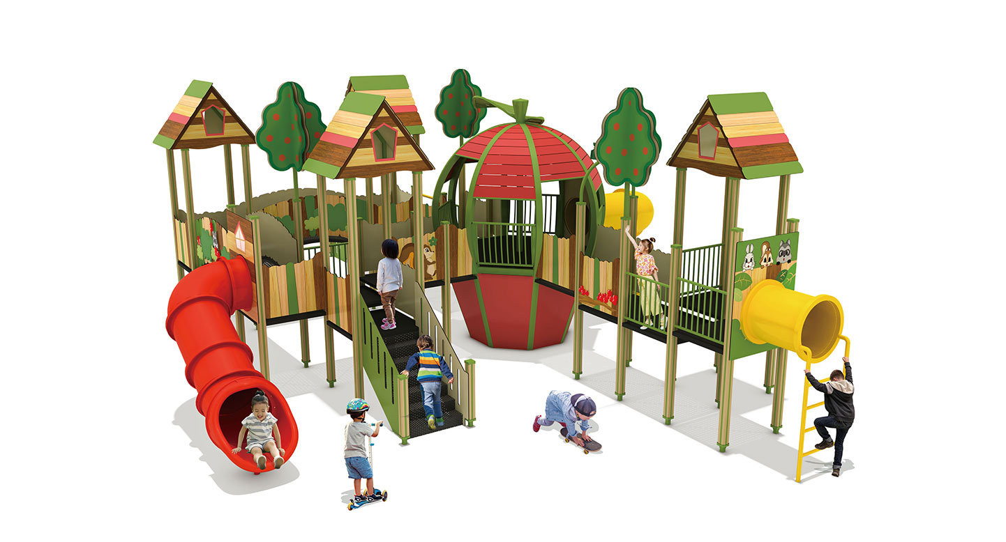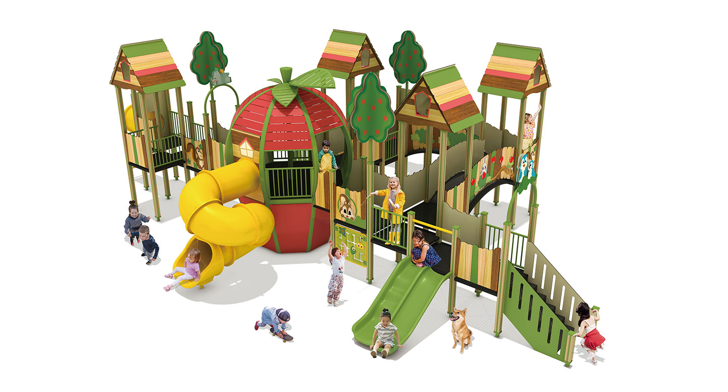 애플 포레스트 플레이빌리지(Apple Forest Play Village)|FNK-041B 제품목록으로 바로가기 자료 및 바로가기 나라장터 바로연결 도면 다운로드 시공사진 보러가기 기타 사과를 형상화한 중앙 놀이 타워와 숲속 오두막형 데크를 연결해 아이들이 오르고 이동하며 미끄러지는 놀이 흐름을 자연스럽게 즐길 수 있도록 구성한 조합 놀이시설이다. 제품명 애플 포레스트 플레이빌리지(Apple Forest Play Village)|FNK-041B 물품식별번호 25988174|안전인증번호:CA023H10019-3014 규격 12,848 × 9,532 × 4,440(H), 7종 재질 stl, hpl, pe, hard wood 애플 포레스트 플레이빌리지(Apple Forest Play Village)|FNK-041B 물품식별번호 25988174|안전인증번호:CA023H10019-3014 규격 12,848 × 9,532 × 4,440(H), 7종 재질 stl, hpl, pe, hard wood 기타 사과를 형상화한 중앙 놀이 타워와 숲속 오두막형 데크를 연결해 아이들이 오르고 이동하며 미끄러지는 놀이 흐름을 자연스럽게 즐길 수 있도록 구성한 조합 놀이시설이다. 자료 및 바로가기 나라장터 바로연결 도면 다운로드 시공사진 보러가기