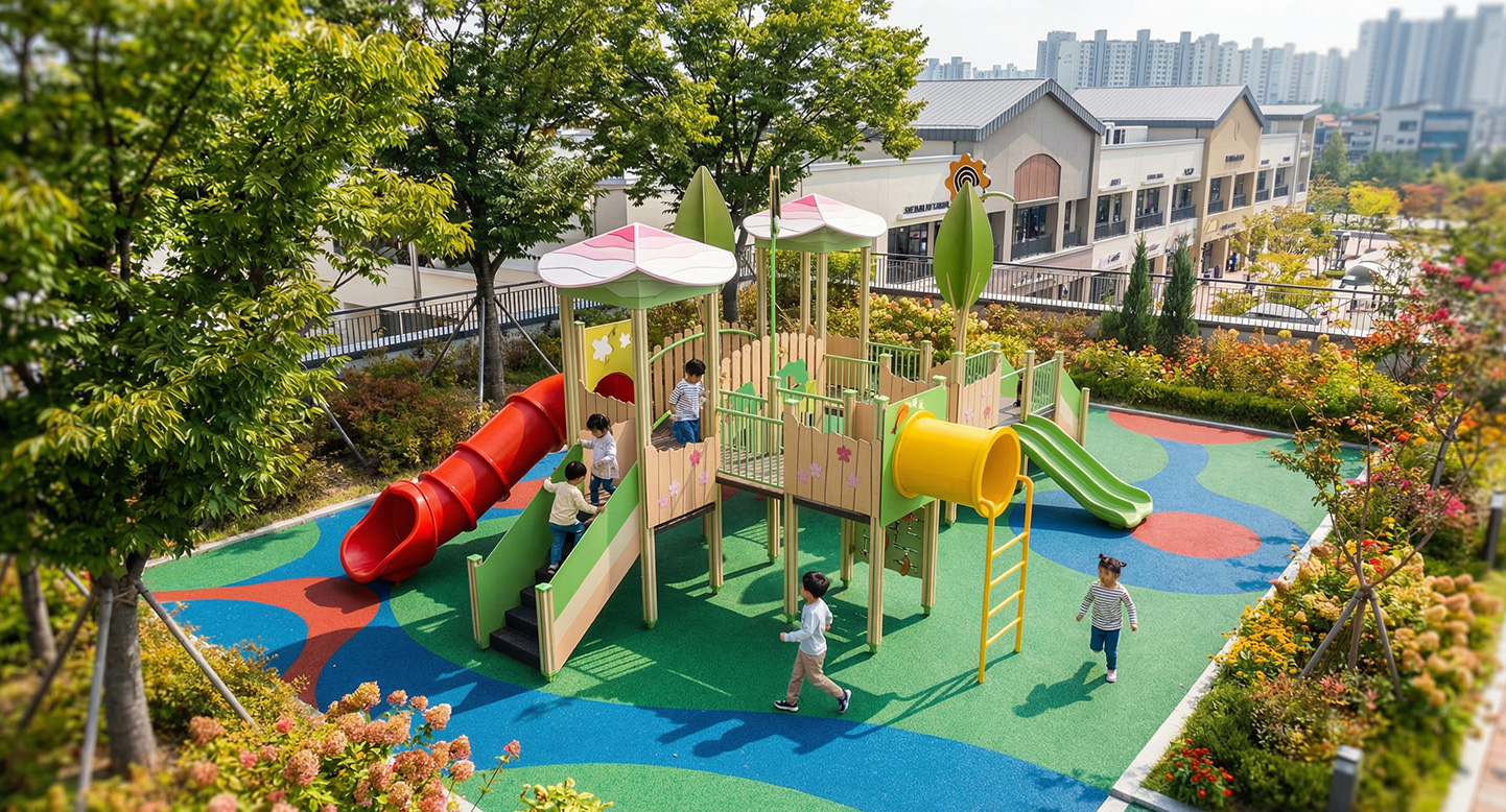 블로썸 브릿지 플레이가든(Blossom Bridge Play Garden)|FNK-041-4A 제품목록으로 바로가기 자료 및 바로가기 나라장터 바로연결 도면 다운로드 시공사진 보러가기 기타 꽃잎 지붕의 데크를 브리지로 연결하고 슬라이드와 오르기 요소를 배치해 아이들이 이동하며 다양한 놀이 동작을 자연스럽게 이어갈 수 있도록 구성한 조합 놀이시설이다. 제품명 블로썸 브릿지 플레이가든(Blossom Bridge Play Garden)|FNK-041-4A 물품식별번호 25988173|안전인증번호:CA023H10019-3014 규격 10,365 × 6,370 × 4,440(H), 5종 재질 stl, hpl, pe, hard wood 블로썸 브릿지 플레이가든(Blossom Bridge Play Garden)|FNK-041-4A 물품식별번호 25988173|안전인증번호:CA023H10019-3014 규격 10,365 × 6,370 × 4,440(H), 5종 재질 stl, hpl, pe, hard wood 기타 꽃잎 지붕의 데크를 브리지로 연결하고 슬라이드와 오르기 요소를 배치해 아이들이 이동하며 다양한 놀이 동작을 자연스럽게 이어갈 수 있도록 구성한 조합 놀이시설이다. 자료 및 바로가기 나라장터 바로연결 도면 다운로드 시공사진 보러가기