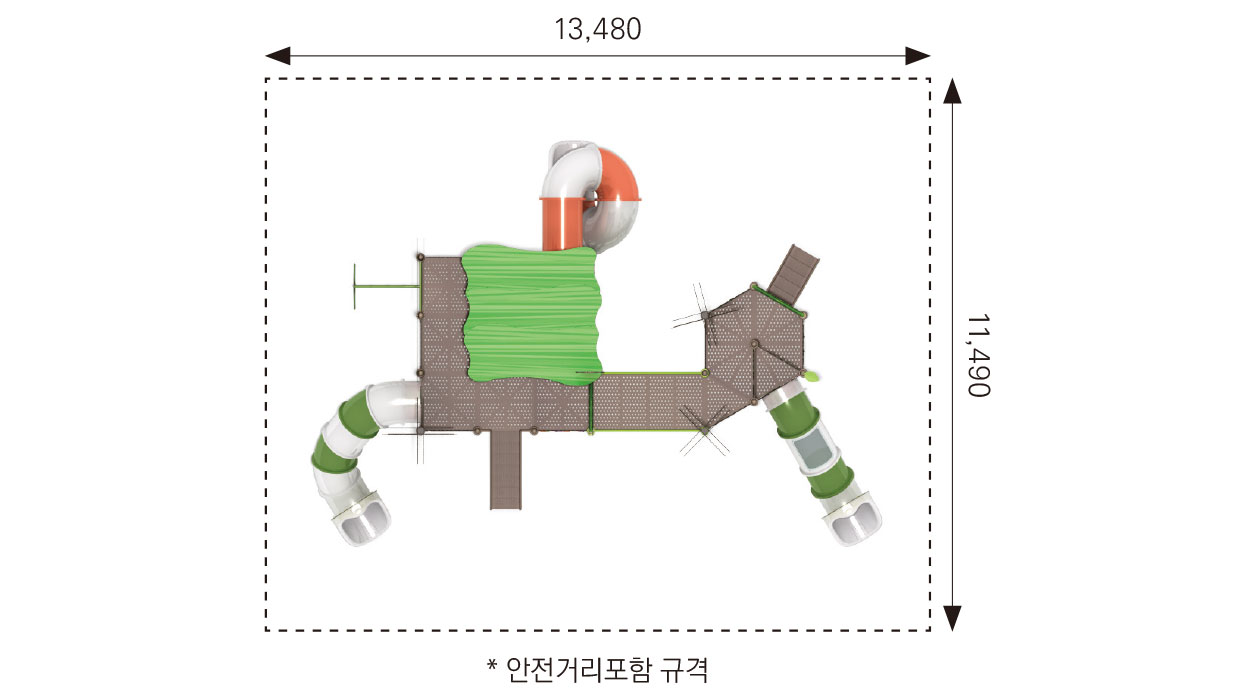 정글 팜 어드벤처(Jungle Farm Adventure)|FNK-038A 제품목록으로 바로가기 자료 및 바로가기 나라장터 바로연결 도면 다운로드 시공사진 보러가기 기타 야자수와 정글을 모티브로 한 놀이 구조에 계단과 곡선형 터널 미끄럼틀을 결합해 아이들이 오르기와 내려오기를 반복하며 활동적인 신체 놀이를 즐길 수 있도록 구성한 조합 놀이시설이다. 제품명 정글 팜 어드벤처(Jungle Farm Adventure)|FNK-038A 물품식별번호 25988191|안전인증번호:CA023H10019-3012 규격 10,480 × 7,490 × 5,200(H), 10종 재질 stl, hpl, pe, hard wood 정글 팜 어드벤처(Jungle Farm Adventure)|FNK-038A 물품식별번호 25988191|안전인증번호:CA023H10019-3012 규격 10,480 × 7,490 × 5,200(H), 10종 재질 stl, hpl, pe, hard wood 기타 야자수와 정글을 모티브로 한 놀이 구조에 계단과 곡선형 터널 미끄럼틀을 결합해 아이들이 오르기와 내려오기를 반복하며 활동적인 신체 놀이를 즐길 수 있도록 구성한 조합 놀이시설이다. 자료 및 바로가기 나라장터 바로연결 도면 다운로드 시공사진 보러가기