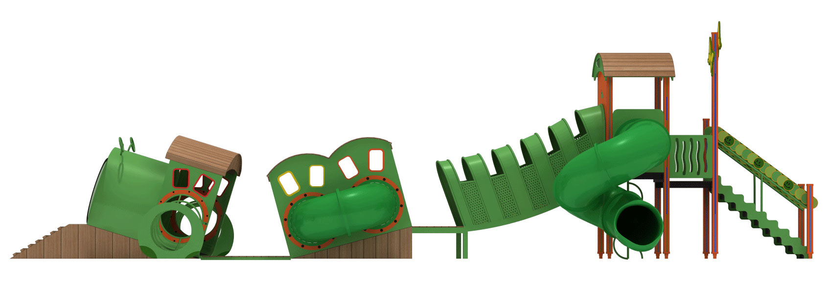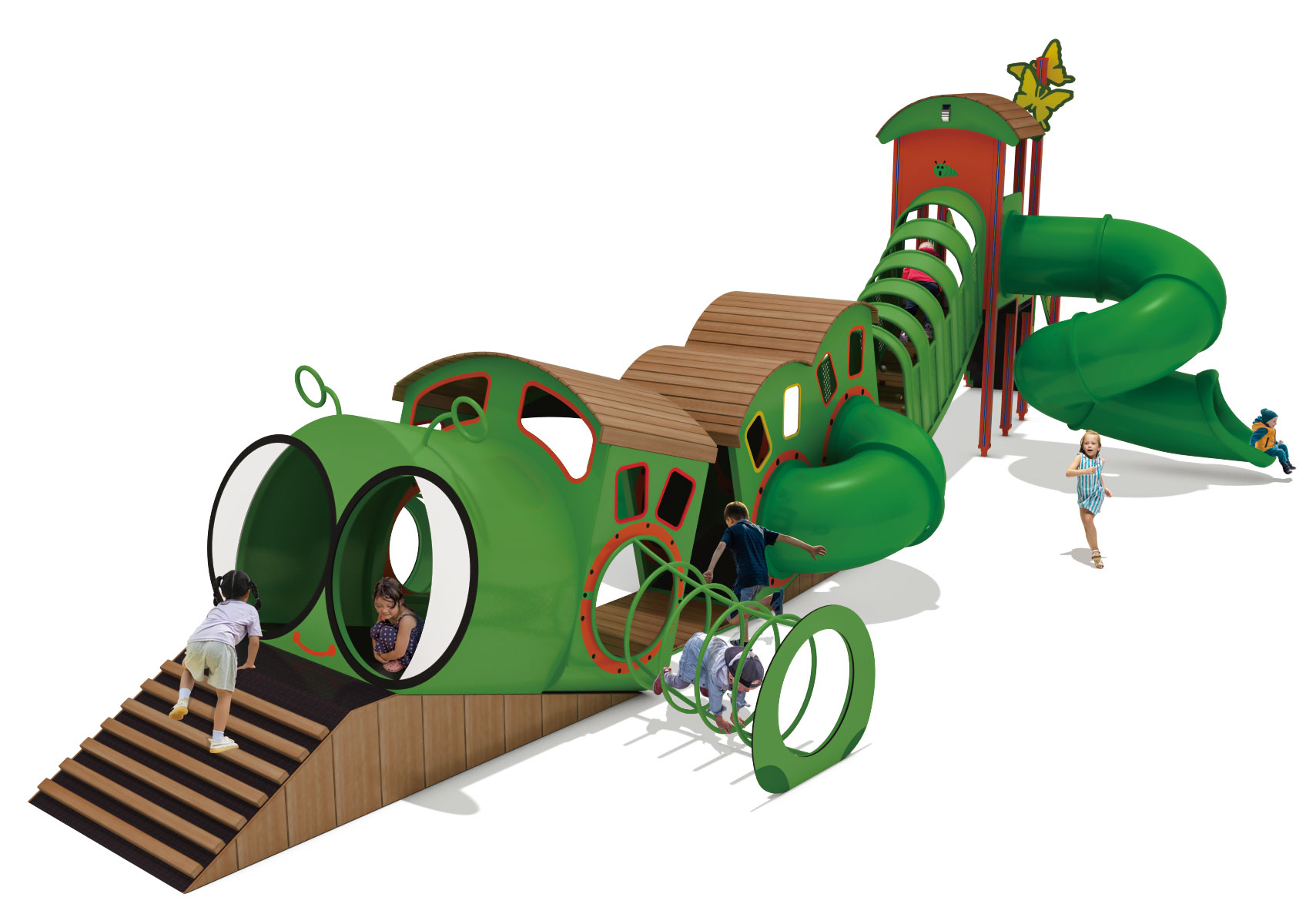 캐터필러 어드벤처 트랙(Caterpillar Adventure Track)|FNK-037A 제품목록으로 바로가기 자료 및 바로가기 나라장터 바로연결 도면 다운로드 시공사진 보러가기 기타 애벌레를 형상화한 연속 터널과 데크를 따라 오르기·통과·미끄러지기 놀이가 하나의 흐름으로 이어지도록 구성해 아이들의 이동 놀이와 탐험 경험을 강화한 조합 놀이시설이다. 제품명 캐터필러 어드벤처 트랙(Caterpillar Adventure Track)|FNK-037A 물품식별번호 25988190|안전인증번호:CA023H10019-3017 규격 13,806 × 5,077 × 4,140(H), 8종 재질 stl, hpl, pe, hard wood 캐터필러 어드벤처 트랙(Caterpillar Adventure Track)|FNK-037A 물품식별번호 25988190|안전인증번호:CA023H10019-3017 규격 13,806 × 5,077 × 4,140(H), 8종 재질 stl, hpl, pe, hard wood 기타 애벌레를 형상화한 연속 터널과 데크를 따라 오르기·통과·미끄러지기 놀이가 하나의 흐름으로 이어지도록 구성해 아이들의 이동 놀이와 탐험 경험을 강화한 조합 놀이시설이다. 자료 및 바로가기 나라장터 바로연결 도면 다운로드 시공사진 보러가기