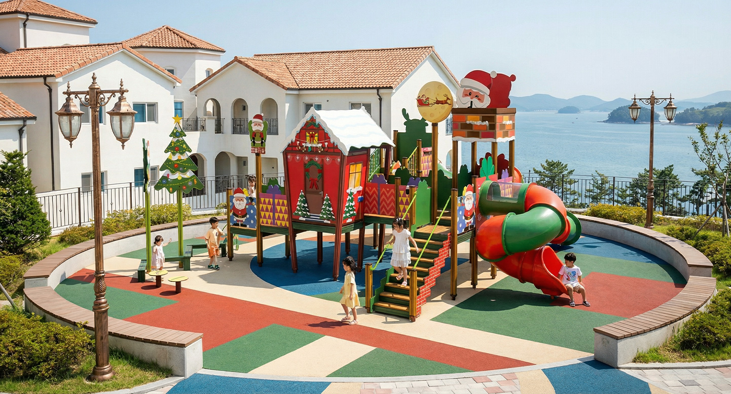 산타 빌리지 플레이 스트리트 (Santa Village Play Street)|GGPG-012-2 제품목록으로 바로가기 자료 및 바로가기 나라장터 바로연결 도면 다운로드 시공사진 보러가기 기타 산타의 집과 크리스마스 마을 골목을 따라 이어지는 놀이 거리를 콘셉트로 디자인 하였습니다. 슬라이드와 데크, 오르기 요소를 마을 동선처럼 연결해 아이들이 축제 분위기 속에서 이동하며 놀이 이야기를 자연스럽게 만들어가도록 표현하였습니다. 제품명 산타 빌리지 플레이 스트리트 (Santa Village Play Street)|GGPG-012-2 물품식별번호 25438410|안전인증번호:CA023H10019-3022 규격 11,125 x 9,866 x 4,745(H), 7종 재질 stl, hpl, pe, hard wood 산타 빌리지 플레이 스트리트 (Santa Village Play Street)|GGPG-012-2 물품식별번호 25438410|안전인증번호:CA023H10019-3022 규격 11,125 x 9,866 x 4,745(H), 7종 재질 stl, hpl, pe, hard wood 기타 산타의 집과 크리스마스 마을 골목을 따라 이어지는 놀이 거리를 콘셉트로 디자인 하였습니다. 슬라이드와 데크, 오르기 요소를 마을 동선처럼 연결해 아이들이 축제 분위기 속에서 이동하며 놀이 이야기를 자연스럽게 만들어가도록 표현하였습니다. 자료 및 바로가기 나라장터 바로연결 도면 다운로드 시공사진 보러가기