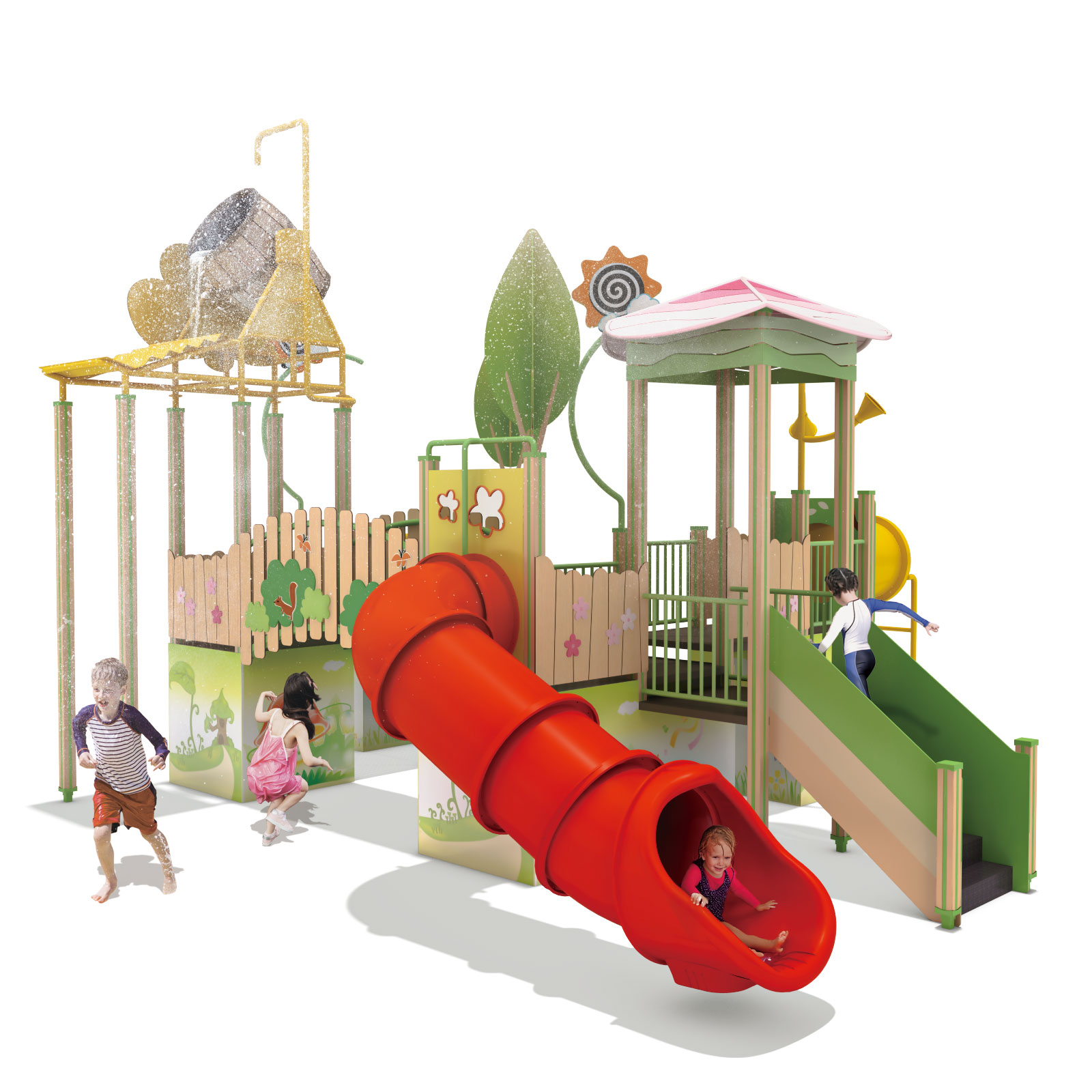 트로피컬 워터 플레이빌리지(Tropical Water Play Village)|WP-J004-4A 제품목록으로 바로가기 자료 및 바로가기 나라장터 바로연결 도면 다운로드 시공사진 보러가기 기타 열대 과일과 야자수를 모티브로 한 구조에 워터버킷 낙수, 분사형 물놀이 장치, 터널형·곡선형 미끄럼틀을 결합한 물놀이 조합놀이대로, 아이들이 이동하며 물의 떨어짐과 흐름을 직접 체험하고 여름철 신체 활동과 감각 놀이를 동시에 즐길 수 있도록 구성하였다. 제품명 트로피컬 워터 플레이빌리지(Tropical Water Play Village)|WP-J004-4A 물품식별번호 25988195|안전인증번호:CA023H10019-3007 규격 10,365 × 6,370 × 5,800(H), 8종 재질 sts, pe, hard wood 트로피컬 워터 플레이빌리지(Tropical Water Play Village)|WP-J004-4A 물품식별번호 25988195|안전인증번호:CA023H10019-3007 규격 10,365 × 6,370 × 5,800(H), 8종 재질 sts, pe, hard wood 기타 열대 과일과 야자수를 모티브로 한 구조에 워터버킷 낙수, 분사형 물놀이 장치, 터널형·곡선형 미끄럼틀을 결합한 물놀이 조합놀이대로, 아이들이 이동하며 물의 떨어짐과 흐름을 직접 체험하고 여름철 신체 활동과 감각 놀이를 동시에 즐길 수 있도록 구성하였다. 자료 및 바로가기 나라장터 바로연결 도면 다운로드 시공사진 보러가기