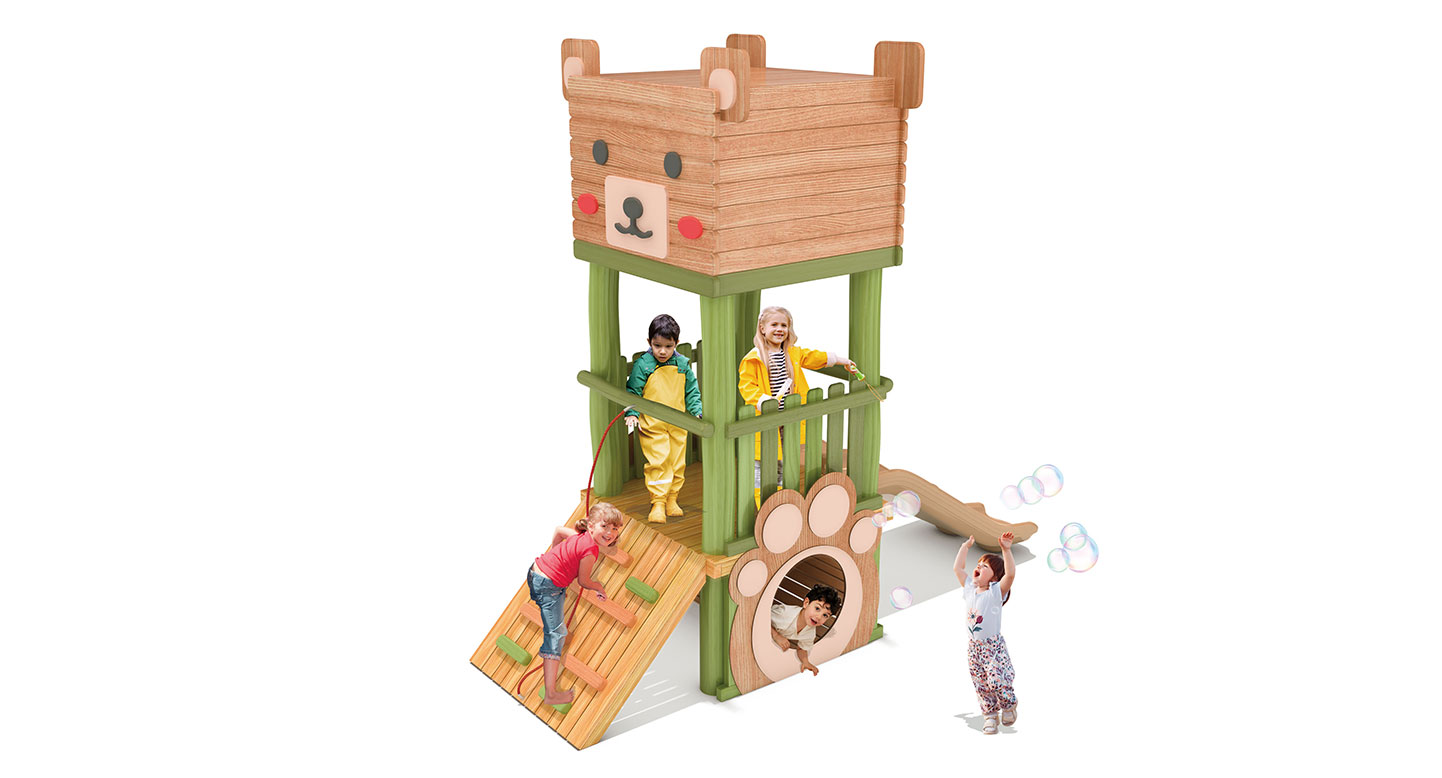 베어 큐브 로비니아 플레이(Bear Cube Robinia Play)|FNK-RO-104(곰돌이 놀이터) 제품목록으로 바로가기 자료 및 바로가기 나라장터 바로연결 도면 다운로드 시공사진 보러가기 기타 곰 캐릭터를 모티브로 한 큐브형 상부 구조에 로비니아 원목 기둥을 적용한 놀이대로, 오르기·숨기·미끄럼 요소를 한 공간에 담아 아이들의 상상 놀이와 기초 신체 활동을 동시에 유도하도록 구성한 로비니아 놀이대이다. 제품명 베어 큐브 로비니아 플레이(Bear Cube Robinia Play)|FNK-RO-104(곰돌이 놀이터) 물품식별번호 25814434|안전인증번호:CA023H10019-5049 규격 1,700 × 4,190 × 3,920(H), 3종 재질 robinia, hpl, pe, PP rope, hard wood 베어 큐브 로비니아 플레이(Bear Cube Robinia Play)|FNK-RO-104(곰돌이 놀이터) 물품식별번호 25814434|안전인증번호:CA023H10019-5049 규격 1,700 × 4,190 × 3,920(H), 3종 재질 robinia, hpl, pe, PP rope, hard wood 기타 곰 캐릭터를 모티브로 한 큐브형 상부 구조에 로비니아 원목 기둥을 적용한 놀이대로, 오르기·숨기·미끄럼 요소를 한 공간에 담아 아이들의 상상 놀이와 기초 신체 활동을 동시에 유도하도록 구성한 로비니아 놀이대이다. 자료 및 바로가기 나라장터 바로연결 도면 다운로드 시공사진 보러가기