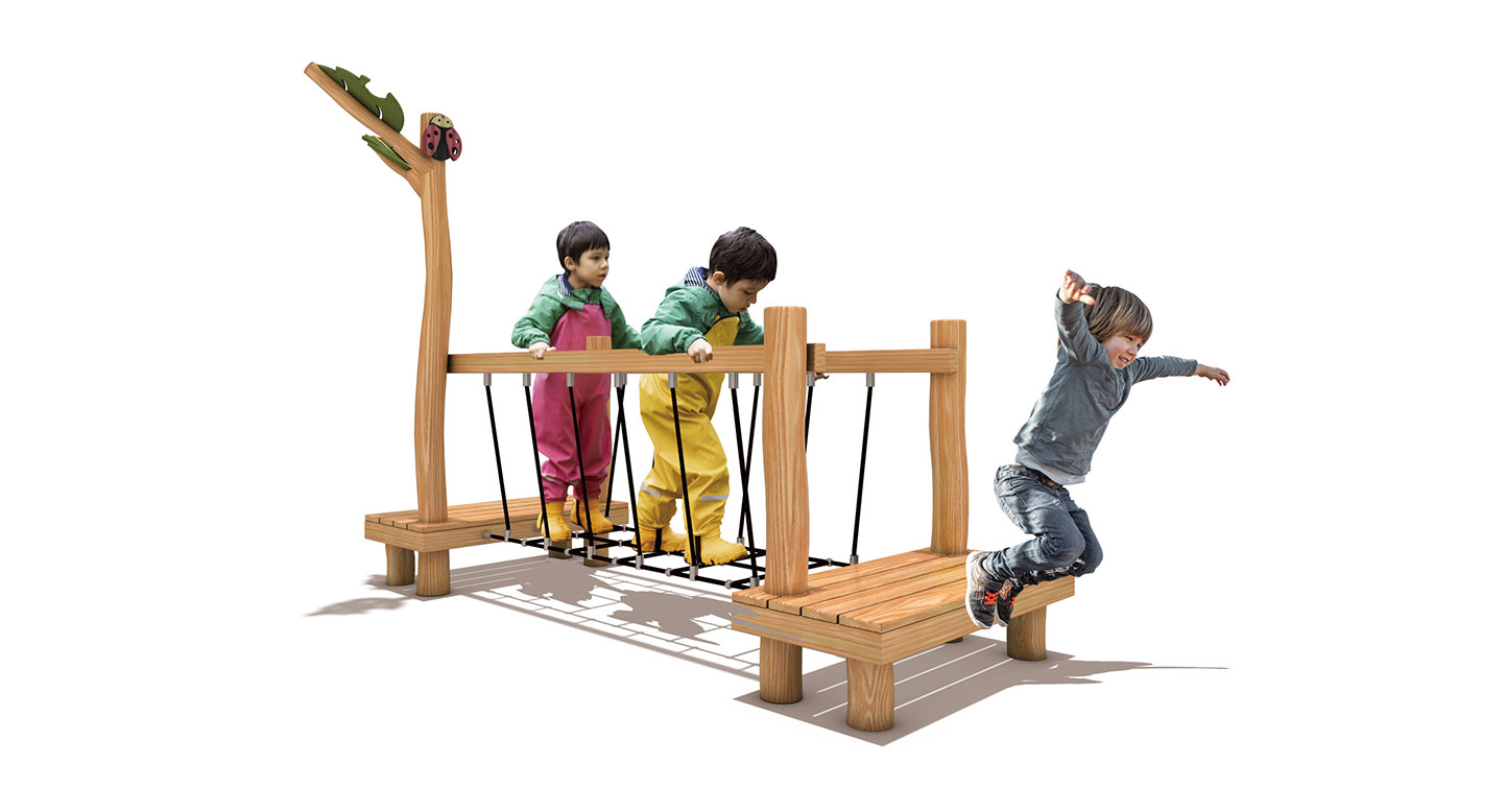 F&K-RO-002(그물다리) 안전인증번호 | CA023H074-20042 제품목록으로 바로가기 자료 및 바로가기 나라장터 바로연결 도면 다운로드 시공사진 보러가기 기타 유연한 로프 구조로 만들어진 그물 다리를 건너며 균형을 잡는 놀이시설로, 아이들이 자연스럽게 하체 근력과 협응력을 기를 수 있습니다. 로비니아 목재의 따뜻한 질감과 숲속을 연상시키는 디자인이 어우러져, 안정감 있는 체험형 밸런스 놀이를 제공합니다. 제품명 F&K-RO-002(그물다리) 안전인증번호 | CA023H074-20042 물품식별번호 24050906 규격 2,810 × 1,570 × 2,200(H) 재질 robinia, PP rope F&K-RO-002(그물다리) 안전인증번호 | CA023H074-20042 물품식별번호 24050906 규격 2,810 × 1,570 × 2,200(H) 재질 robinia, PP rope 기타 유연한 로프 구조로 만들어진 그물 다리를 건너며 균형을 잡는 놀이시설로, 아이들이 자연스럽게 하체 근력과 협응력을 기를 수 있습니다. 로비니아 목재의 따뜻한 질감과 숲속을 연상시키는 디자인이 어우러져, 안정감 있는 체험형 밸런스 놀이를 제공합니다. 자료 및 바로가기 나라장터 바로연결 도면 다운로드 시공사진 보러가기