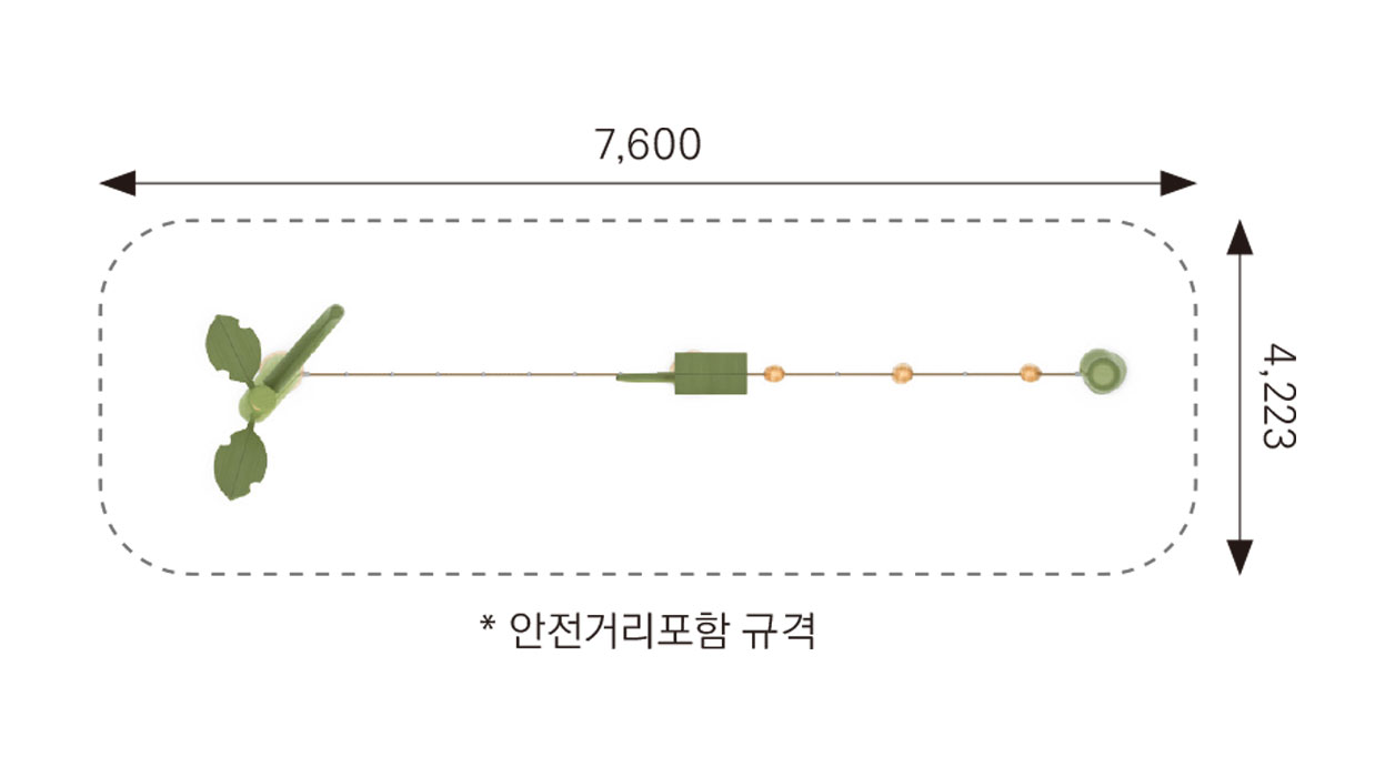 자연 수목을 형상화한 로비니아 목재 기둥과 로프 네트, 밸런스 브리지를 활용한 장애물 코스로, 아이들이 오르기‧건너기‧매달리기 등의 전신 활동을 통해 균형감각과 근력을 자연스럽게 발달시킬 수 있는 숲 테마 놀이시설입니다. 간결한 동선 구성으로 작은 공간에서도 높은 놀이 효과를 제공합니다.