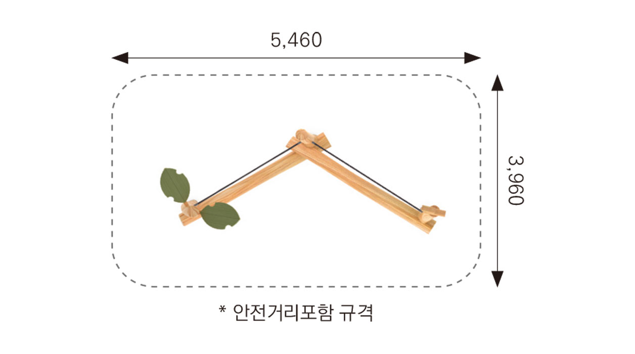 F&K-RO-006(로프외나무다리) 안전인증번호 | CA023H074-20046 제품목록으로 바로가기 자료 및 바로가기 나라장터 바로연결 도면 다운로드 시공사진 보러가기 기타 로프를 잡고 외나무 위를 이동하며 균형을 잡는 놀이시설로, 아이들이 신체 중심을 조절하고 하체 근력을 강화하는 데 효과적입니다. 자연목 디자인과 잎사귀 장식이 숲속을 걷는 듯한 감각을 더해주며, 간단한 구조 속에서도 높은 몰입감과 도전성을 제공합니다. 제품명 F&K-RO-006(로프외나무다리) 안전인증번호 | CA023H074-20046 물품식별번호 24050910 규격 2,460 × 960 × 2,210(H) 재질 robinia, PP rope F&K-RO-006(로프외나무다리) 안전인증번호 | CA023H074-20046 물품식별번호 24050910 규격 2,460 × 960 × 2,210(H) 재질 robinia, PP rope 기타 로프를 잡고 외나무 위를 이동하며 균형을 잡는 놀이시설로, 아이들이 신체 중심을 조절하고 하체 근력을 강화하는 데 효과적입니다. 자연목 디자인과 잎사귀 장식이 숲속을 걷는 듯한 감각을 더해주며, 간단한 구조 속에서도 높은 몰입감과 도전성을 제공합니다. 자료 및 바로가기 나라장터 바로연결 도면 다운로드 시공사진 보러가기