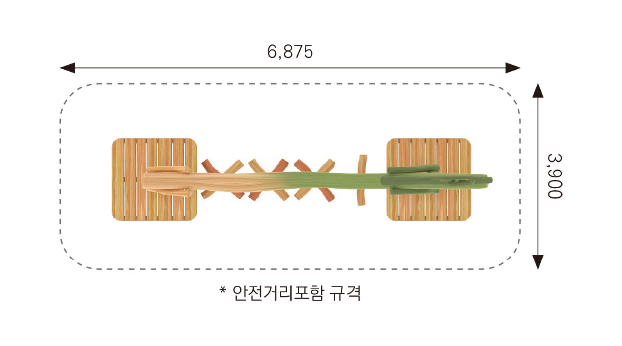 F&K-RO-016-5(나무숲속건너기B) 안전인증번호 | CA023H074-0071 제품목록으로 바로가기 자료 및 바로가기 나라장터 바로연결 도면 다운로드 시공사진 보러가기 기타 로프 해먹 위에서 몸을 맡기고 흔들리며 휴식하거나 균형을 잡는 놀이시설로,아이들이 편안함과 즐거움을 동시에 경험하는 자연형 쉼터 공간입니다. 로비니아 목재 프레임과 나뭇잎 모티브 디자인이 어우러져 마치 숲 속에 머무는 듯한 감각적 놀이환경을 제공합니다. 제품명 F&K-RO-016-5(나무숲속건너기B) 안전인증번호 | CA023H074-0071 물품식별번호 24056556 규격 3,875 × 900 × 3,480(H) 재질 robinia, PP rope F&K-RO-016-5(나무숲속건너기B) 안전인증번호 | CA023H074-0071 물품식별번호 24056556 규격 3,875 × 900 × 3,480(H) 재질 robinia, PP rope 기타 로프 해먹 위에서 몸을 맡기고 흔들리며 휴식하거나 균형을 잡는 놀이시설로,아이들이 편안함과 즐거움을 동시에 경험하는 자연형 쉼터 공간입니다. 로비니아 목재 프레임과 나뭇잎 모티브 디자인이 어우러져 마치 숲 속에 머무는 듯한 감각적 놀이환경을 제공합니다. 자료 및 바로가기 나라장터 바로연결 도면 다운로드 시공사진 보러가기