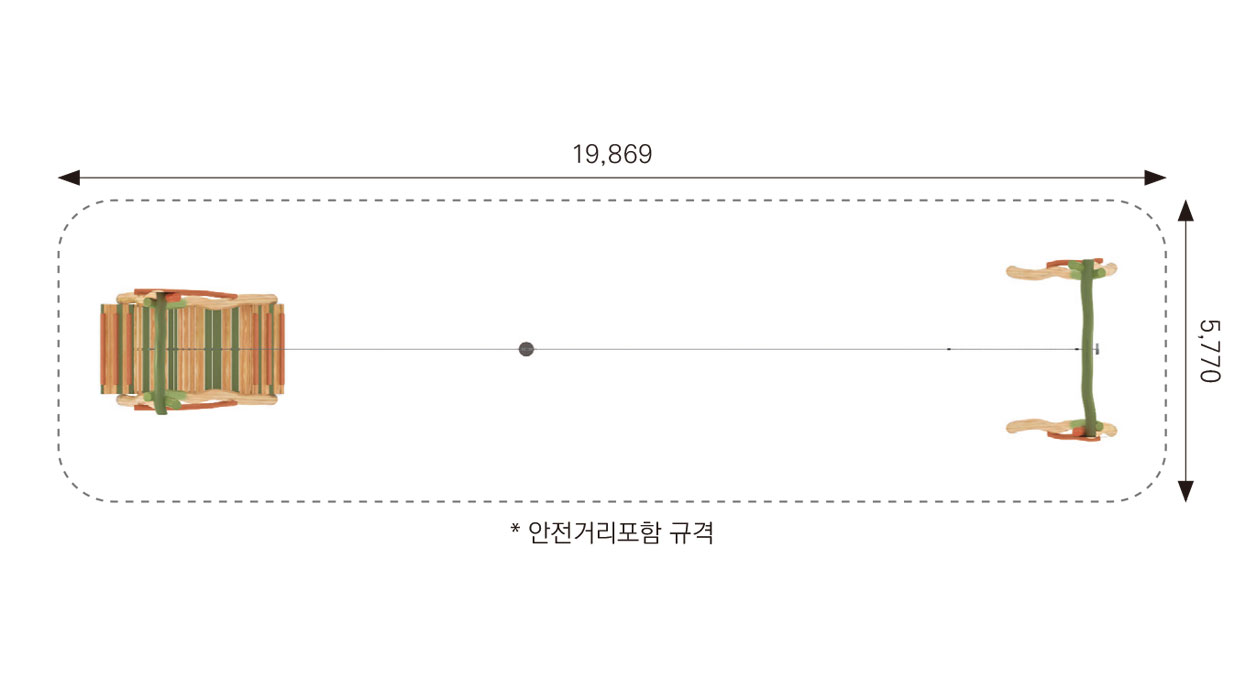 FNK-RO-018-3(인디언짚라인(울타리)D) 안전인증번호 | CA023H074-0058 제품목록으로 바로가기 자료 및 바로가기 나라장터 바로연결 도면 다운로드 시공사진 보러가기 기타 인디언 텐트 모티브의 자연 목재 구조물 사이를 짚라인으로 활강하며, 아이들이 속도감과 모험을 즐기면서 균형 감각과 상체 근력을 키우는 액티비티 놀이시설입니다. 독특한 테마 디자인은 놀이공간에 활기를 더하고, 아이들의 상상놀이를 자연스럽게 이끌어줍니다. 제품명 FNK-RO-018-3(인디언짚라인(울타리)D) 안전인증번호 | CA023H074-0058 물품식별번호 25115554 규격 16,869 × 2,770 × 4,670(H) 재질 robinia FNK-RO-018-3(인디언짚라인(울타리)D) 안전인증번호 | CA023H074-0058 물품식별번호 25115554 규격 16,869 × 2,770 × 4,670(H) 재질 robinia 기타 인디언 텐트 모티브의 자연 목재 구조물 사이를 짚라인으로 활강하며, 아이들이 속도감과 모험을 즐기면서 균형 감각과 상체 근력을 키우는 액티비티 놀이시설입니다. 독특한 테마 디자인은 놀이공간에 활기를 더하고, 아이들의 상상놀이를 자연스럽게 이끌어줍니다. 자료 및 바로가기 나라장터 바로연결 도면 다운로드 시공사진 보러가기