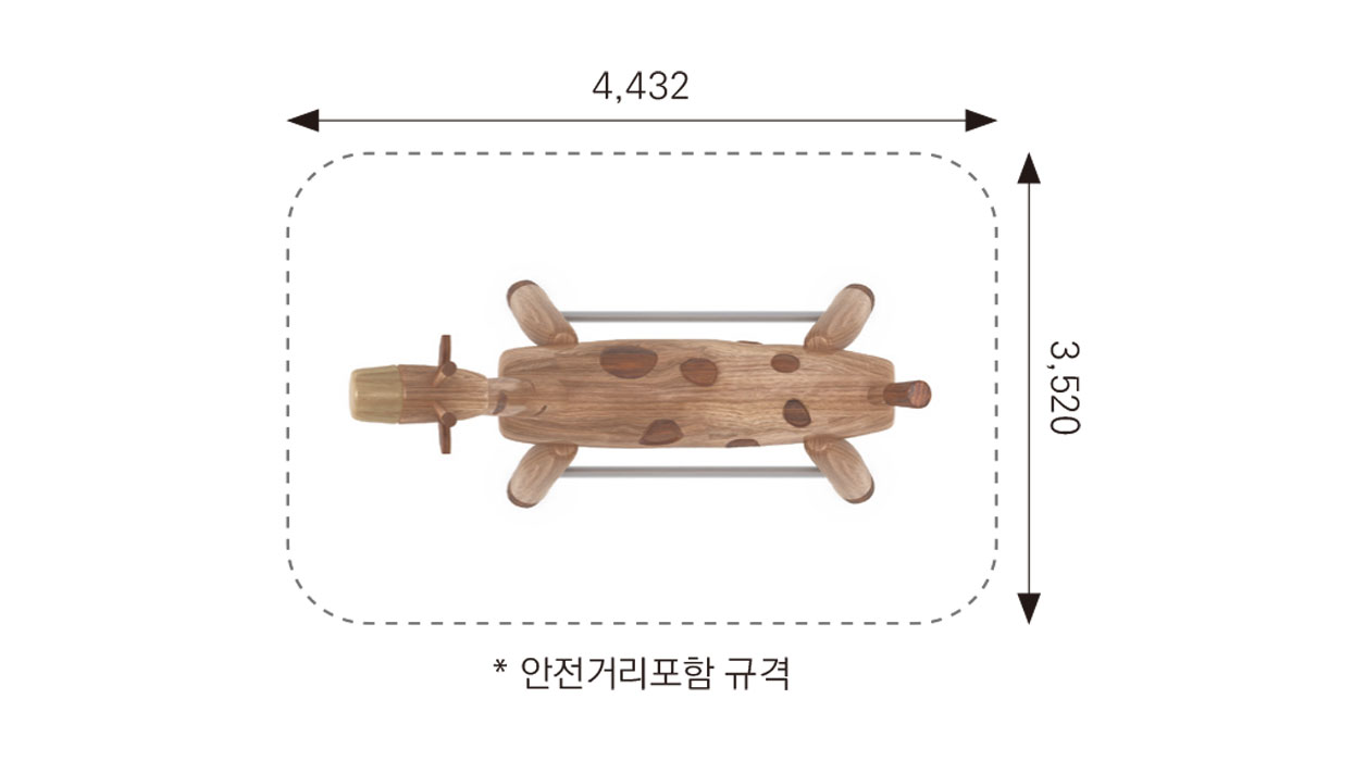 F&K-RO-024(기린) 안전인증번호 | CA023H074-0062 제품목록으로 바로가기 자료 및 바로가기 나라장터 바로연결 도면 다운로드 시공사진 보러가기 기타 아이들이 기린 모양의 구조물을 타고 오르며 균형을 잡고 매달리는 동작을 통해 자연스럽게 신체 근력과 코어 밸런스를 키울 수 있는 감각발달 놀이시설입니다. 사랑스러운 기린 디자인이 아이들의 호기심과 친근감을 높여 동물과 교감하는 듯한 놀이 경험을 제공합니다. 제품명 F&K-RO-024(기린) 안전인증번호 | CA023H074-0062 물품식별번호 24050937 규격 1,432 × 520 × 2,203(H) 재질 robinia F&K-RO-024(기린) 안전인증번호 | CA023H074-0062 물품식별번호 24050937 규격 1,432 × 520 × 2,203(H) 재질 robinia 기타 아이들이 기린 모양의 구조물을 타고 오르며 균형을 잡고 매달리는 동작을 통해 자연스럽게 신체 근력과 코어 밸런스를 키울 수 있는 감각발달 놀이시설입니다. 사랑스러운 기린 디자인이 아이들의 호기심과 친근감을 높여 동물과 교감하는 듯한 놀이 경험을 제공합니다. 자료 및 바로가기 나라장터 바로연결 도면 다운로드 시공사진 보러가기