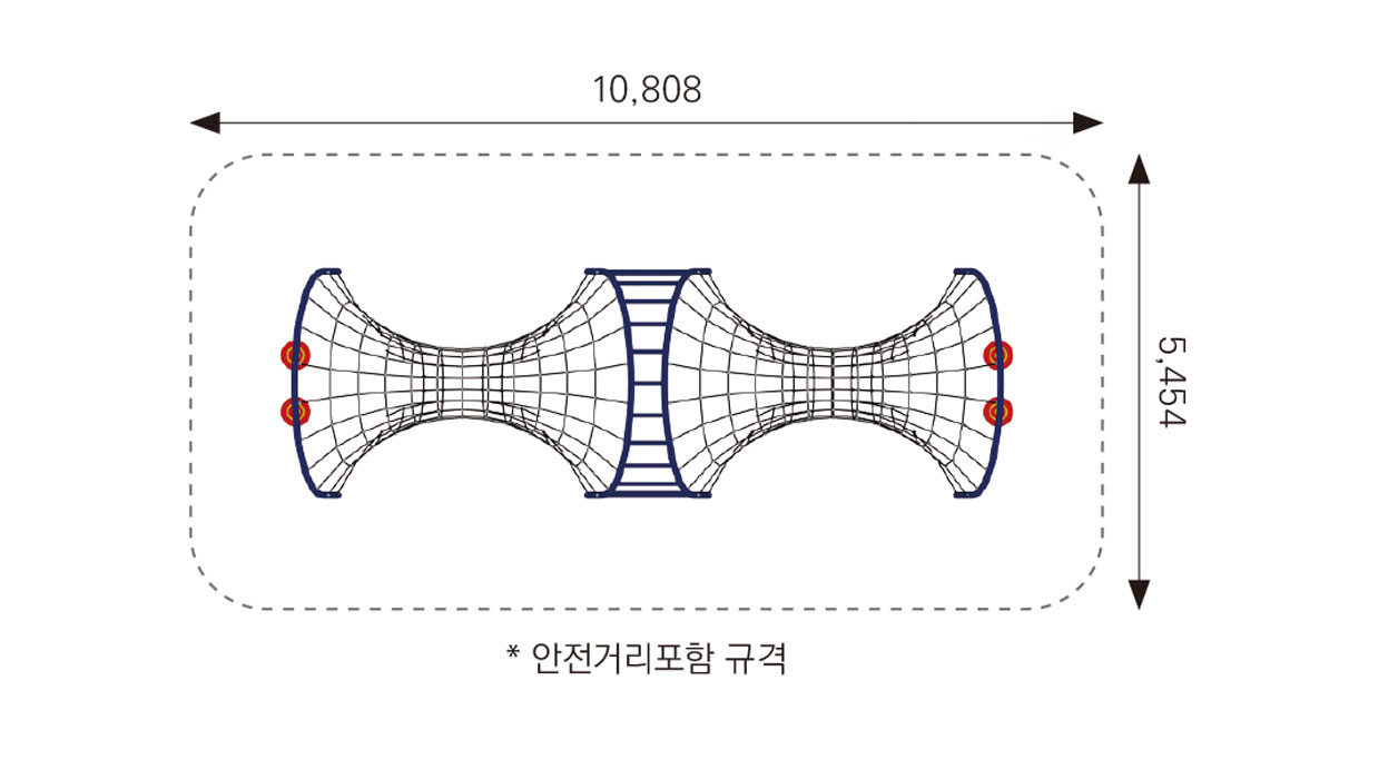 FNK-SN003(네트브릿지) 제품목록으로 바로가기 자료 및 바로가기 나라장터 바로연결 도면 다운로드 시공사진 보러가기 기타 탄탄한 로프와 아치형 구조가 연결된 네트 통로를 건너며 균형감, 근력, 협동심을 기르는 체험형 놀이시설입니다. 아이들이 기어가고 매달리며 자연스럽게 모험심과 신체능력을 향상시킬 수 있습니다. 제품명 FNK-SN003(네트브릿지) 물품식별번호 25152495 규격 7,808 × 2,454 × 1,773(H) 재질 sts, stl, pp rope FNK-SN003(네트브릿지) 물품식별번호 25152495 규격 7,808 × 2,454 × 1,773(H) 재질 sts, stl, pp rope 기타 탄탄한 로프와 아치형 구조가 연결된 네트 통로를 건너며 균형감, 근력, 협동심을 기르는 체험형 놀이시설입니다. 아이들이 기어가고 매달리며 자연스럽게 모험심과 신체능력을 향상시킬 수 있습니다. 자료 및 바로가기 나라장터 바로연결 도면 다운로드 시공사진 보러가기