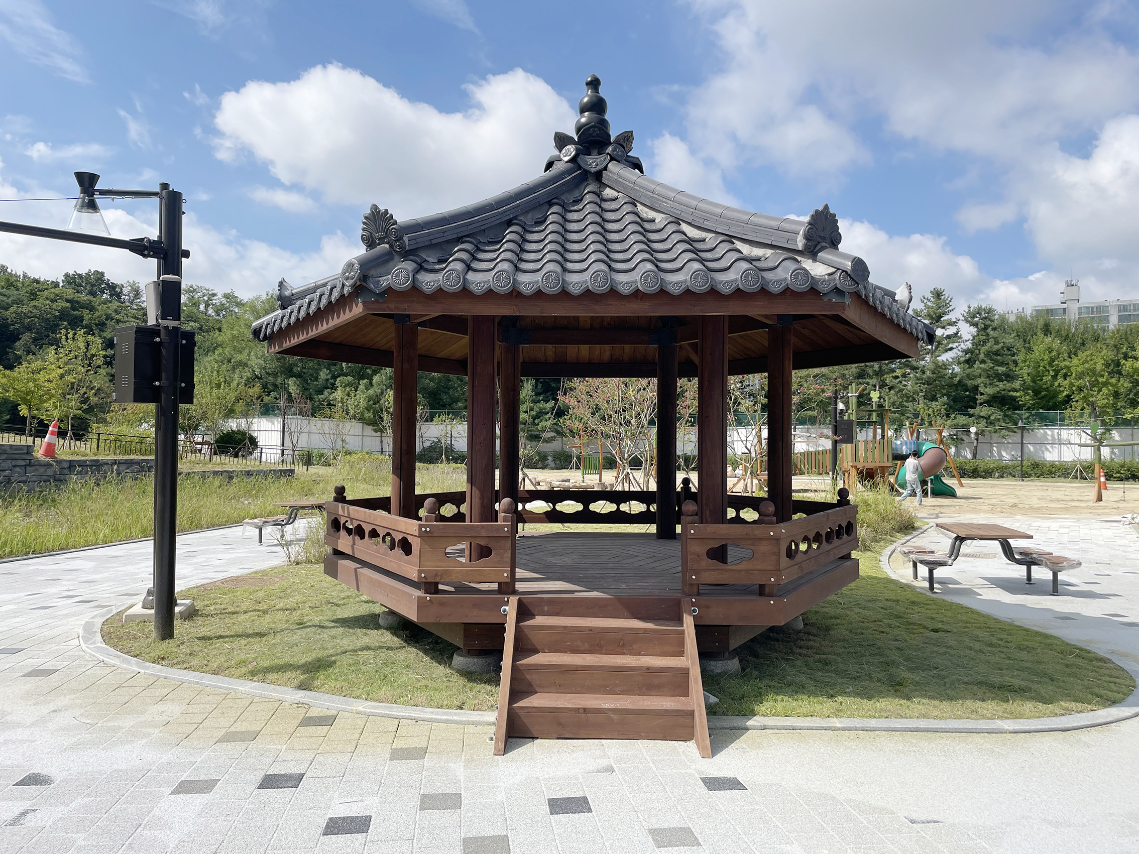 지붕마감을 시멘트기와를 이용한 형태의 정자
